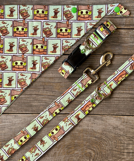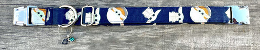 Baby Yoda and Mandalorian (in Silver) -Dog Collar