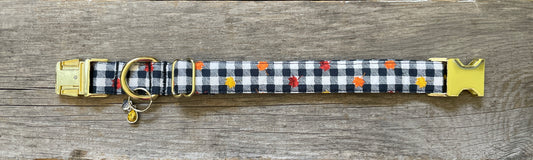 Double-Sided Cat Bandanna - Sunny Days With Coordinating Black and Grey Polka Dots