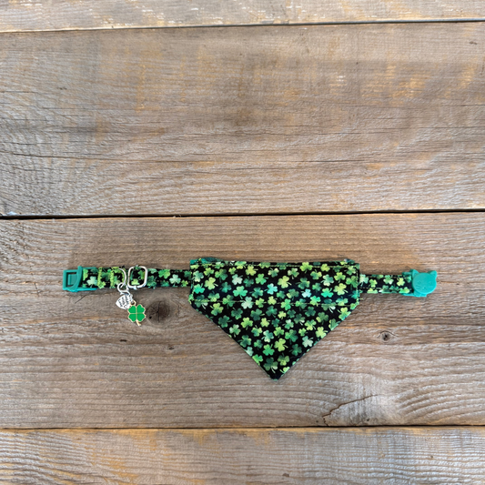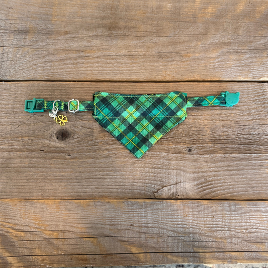 Double-Sided Cat Bandanna - Clover Confetti & Emerald Isle Plaid