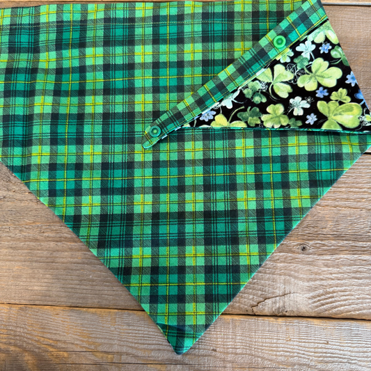 Double-Sided Dog Bandanna - Clover Confetti & Emerald Isle Plaid
