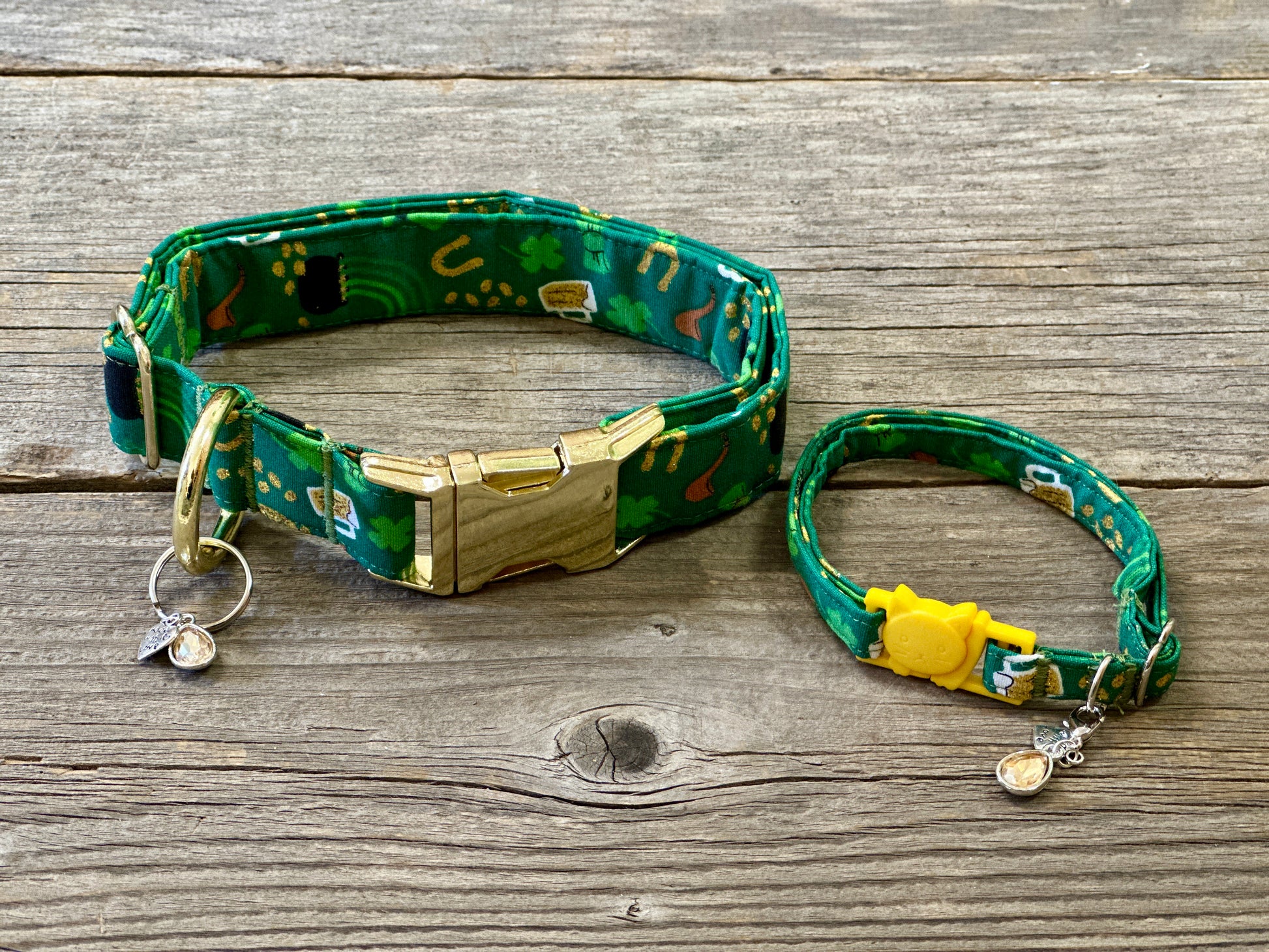 This collar has a matching leash option, don't forget to check it out! Our leashes are 5-foot long, 1-inch wide, and come with a heavy-duty silvertone metal spring-loaded hook that attaches to the D-ring on your pet's collar**. Each collar comes with a coordinating charm*. This hand-crafted collar is made with 100% cotton fabric and your choice of a metal or plastic buckle with a matching adjuster. Each collar is made with a reinforced metal D-ring. This elegant collar is sure to last for years.