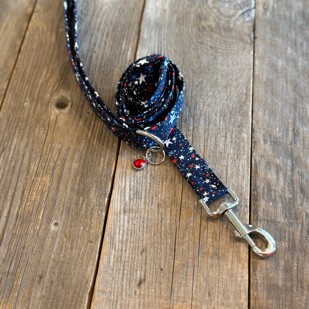 Handcrafted with care, this collar combines style and durability, making it ideal for everything from backyard barbecues to evening strolls under the fireworks. The lightweight yet sturdy material ensures your dog stays comfortable while looking their best. Whether you're celebrating Independence Day or Memorial Day, or simply want to show off your pup’s patriotic pride year-round, the All-American leash is the perfect accessory for your four-legged friend.