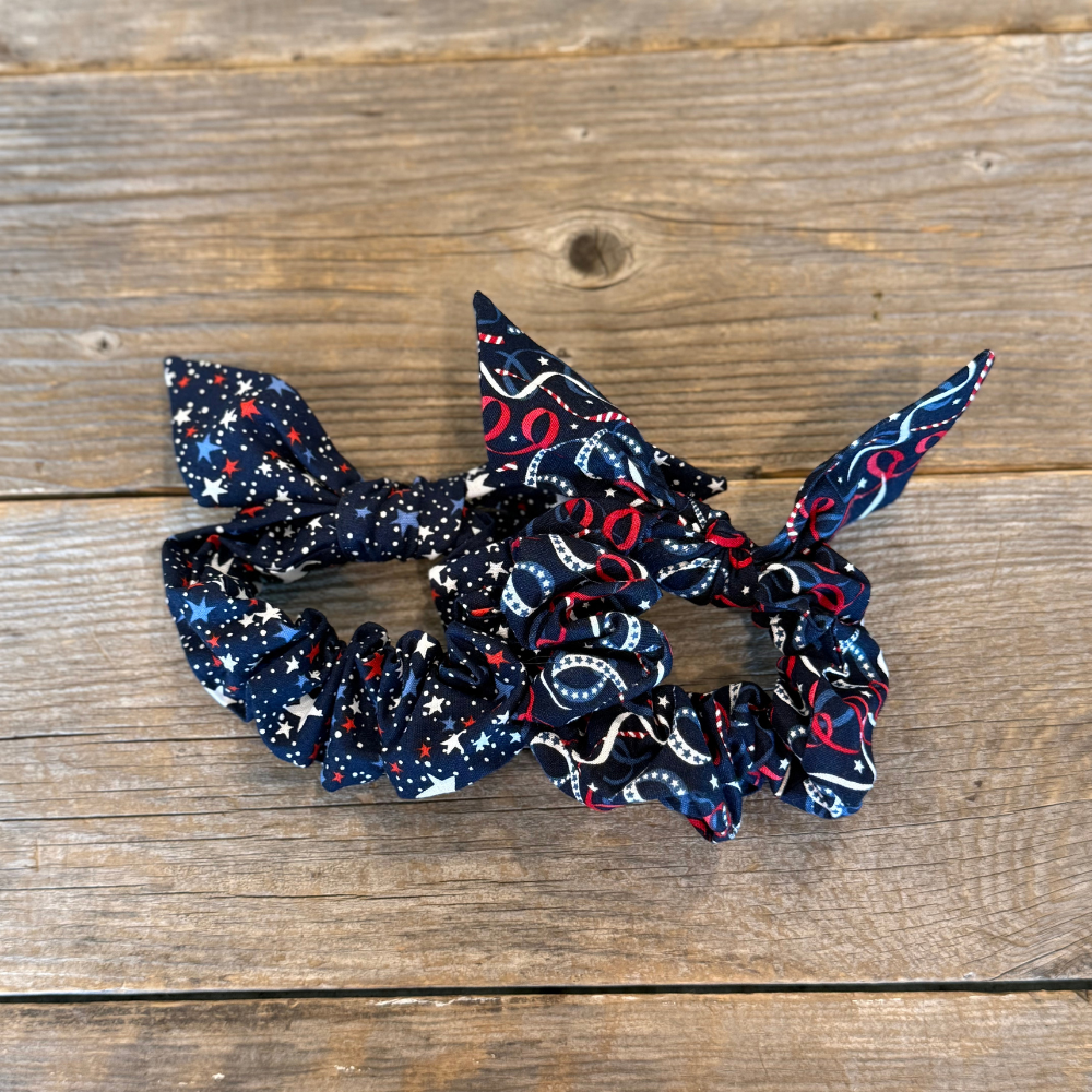 This festive accessory features a lively pattern of red, white, and blue streamers, stars, and stripes dancing across a rich navy background. It’s the perfect way to showcase your patriotic pride