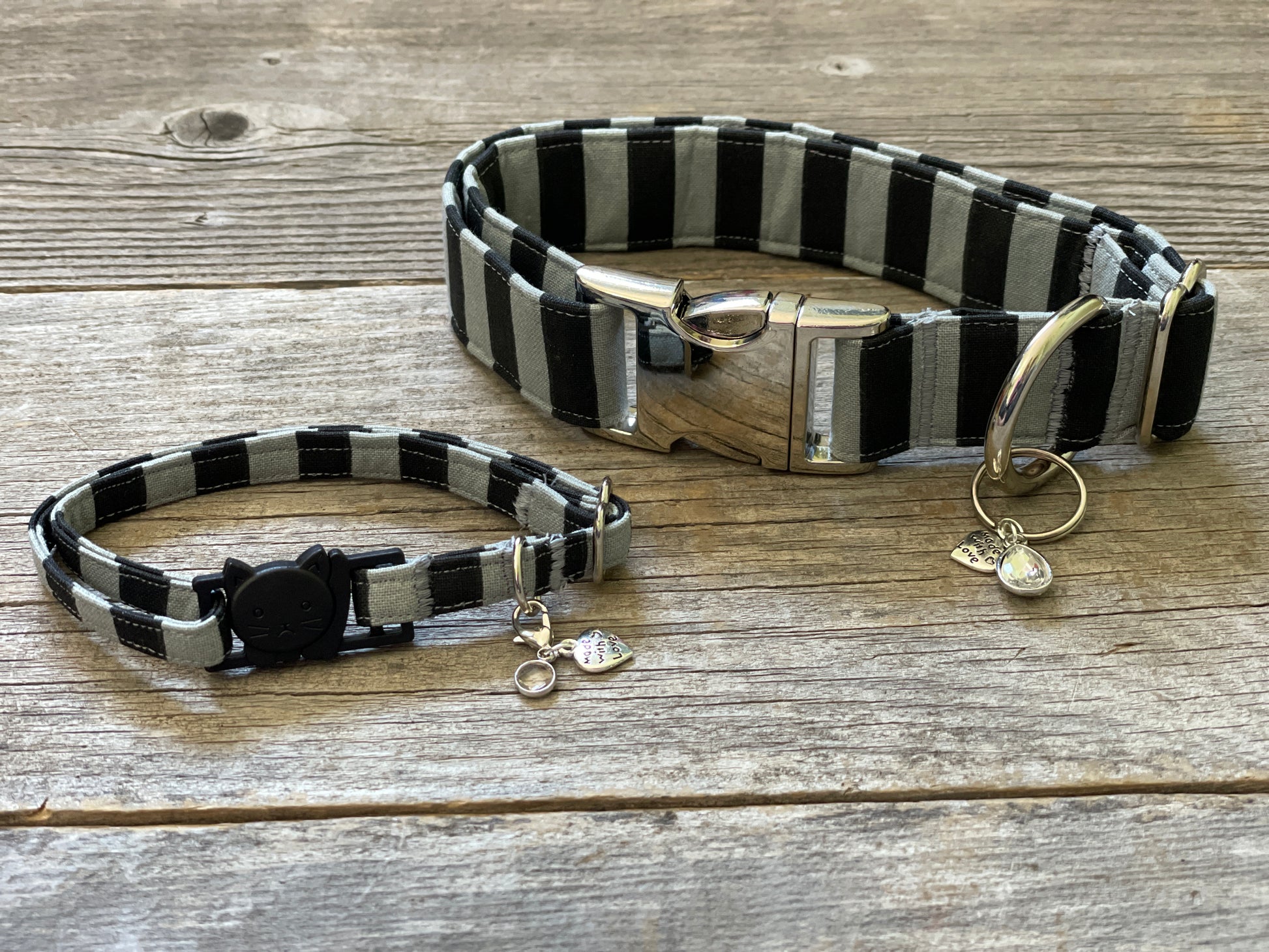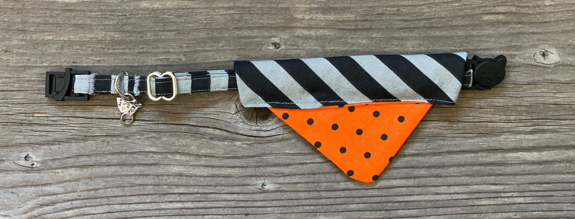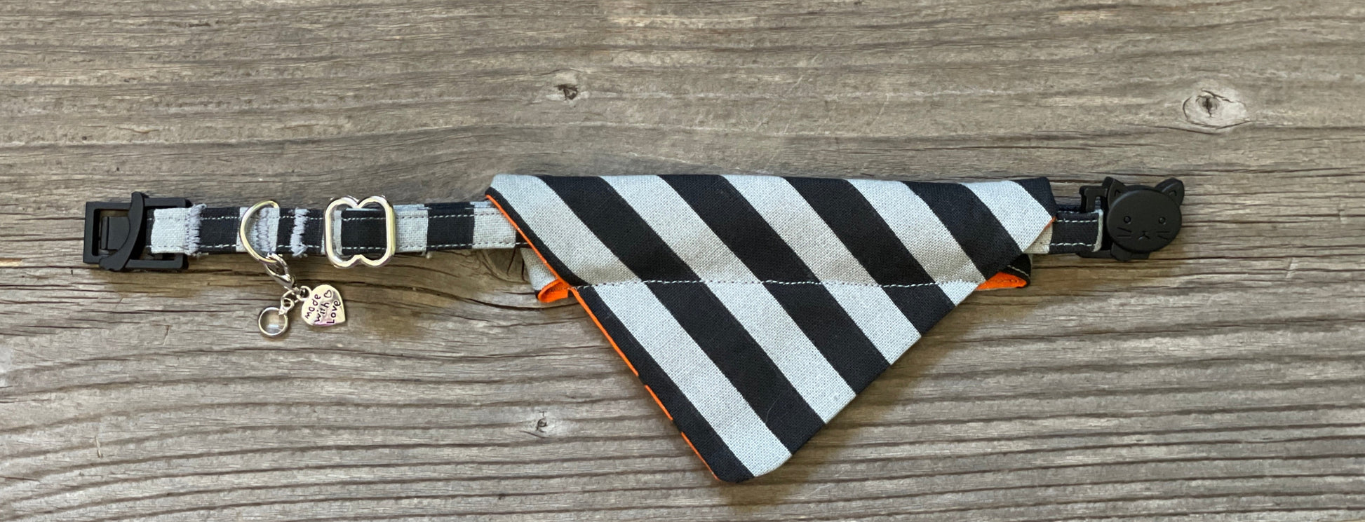 This collar is made out of 100% cotton fabric, making it easy to hand-wash! To wash, simply place it in warm, soapy water and gently rub the fabric. Rinse the collar, then dry it by laying it flat or by hanging it on a wire. If your cat has a little extra fun while wearing this collar, try using a stain-remover pen or spray.
