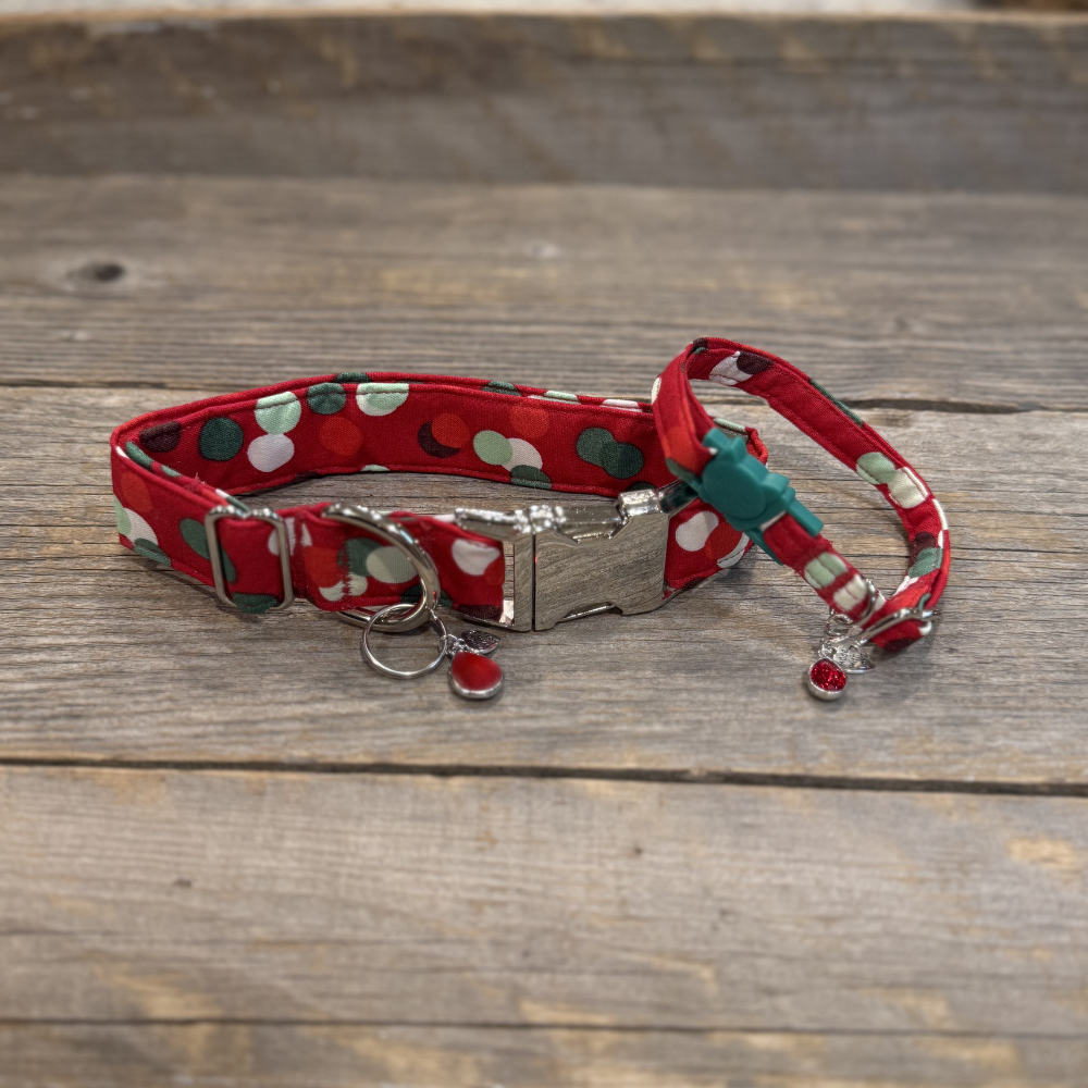 Pop of Joy is a delightful burst of festive fun for your beloved pet. This vibrant collar features a cheerful red background sprinkled with playful polka dots in shades of green and white. The eye-catching design exudes holiday cheer and makes your furry companion the star of any celebration. Crafted with comfort and durability in mind, the Pop of Joy is the perfect accessory for adding a touch of seasonal happiness to your pet's wardrobe!
