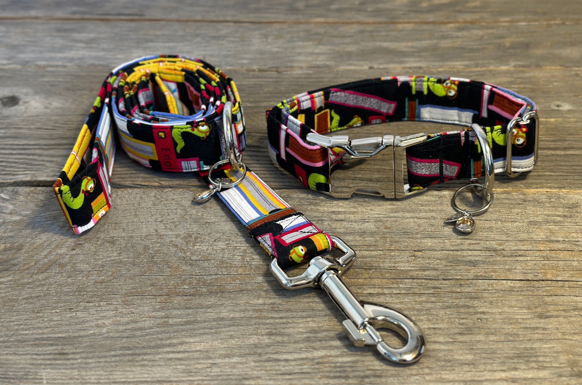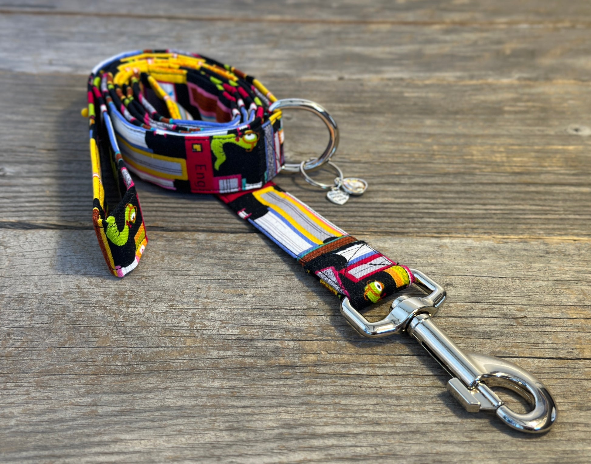 We offer a matching collar to this leash, so don't forget to check it out! All our collars are 1-inch wide and adjustable. We offer small, medium, and large, but are happy to make custom sizes, just send us an email at terrificollars@gmail.com.