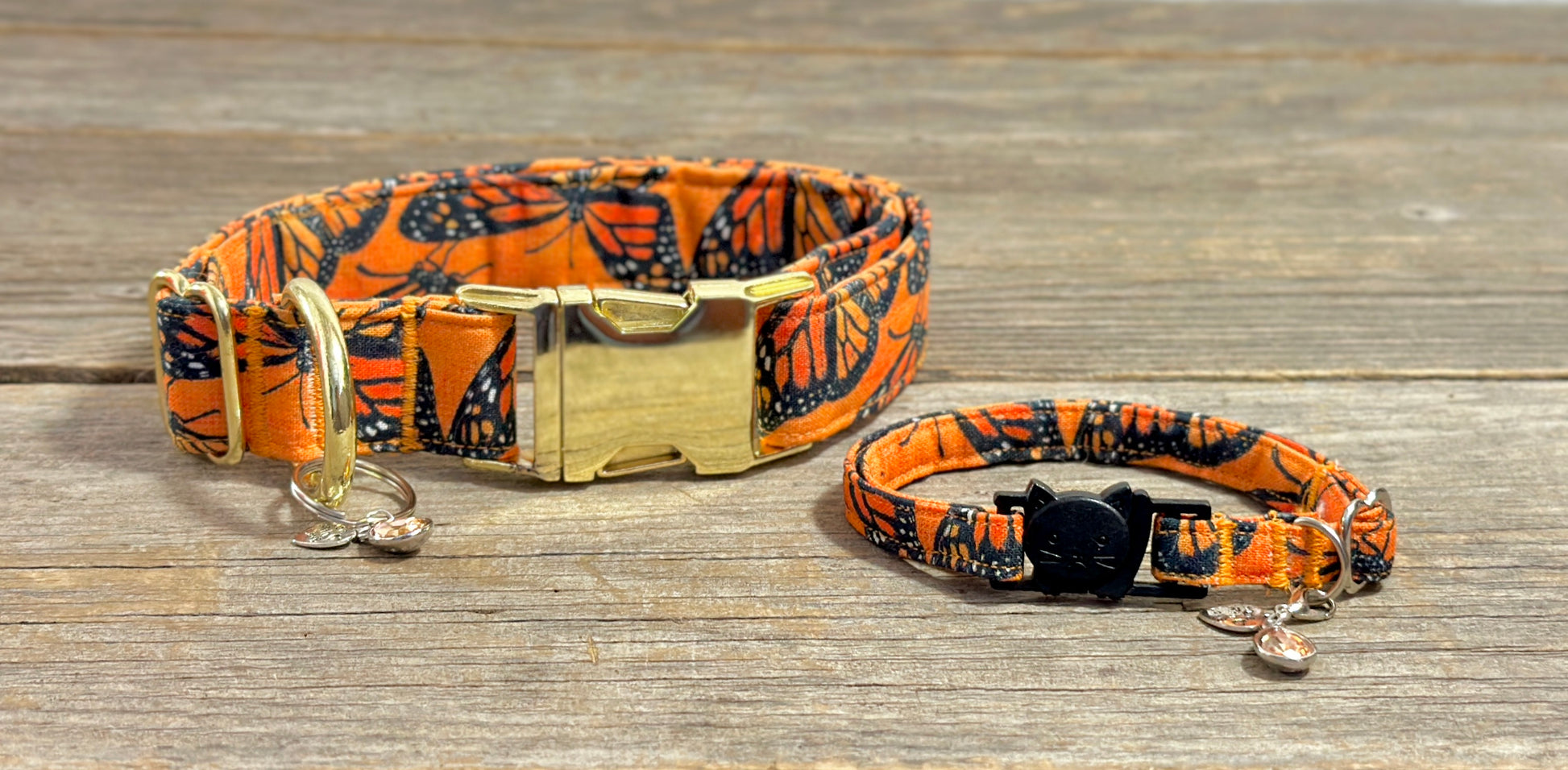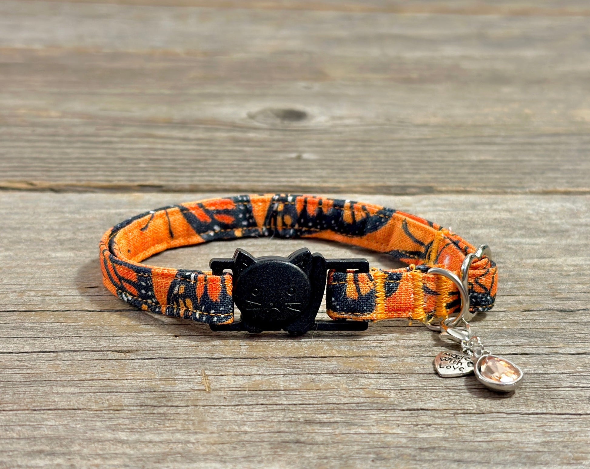 This collar is made out of 100% cotton fabric, making it easy to hand-wash! To wash, simply place it in warm, soapy water and gently rub the fabric. Rinse the collar, then dry it by laying it flat or by hanging it on a wire. If your cat has a little extra fun while wearing this collar, try using a stain-remover pen or spray.