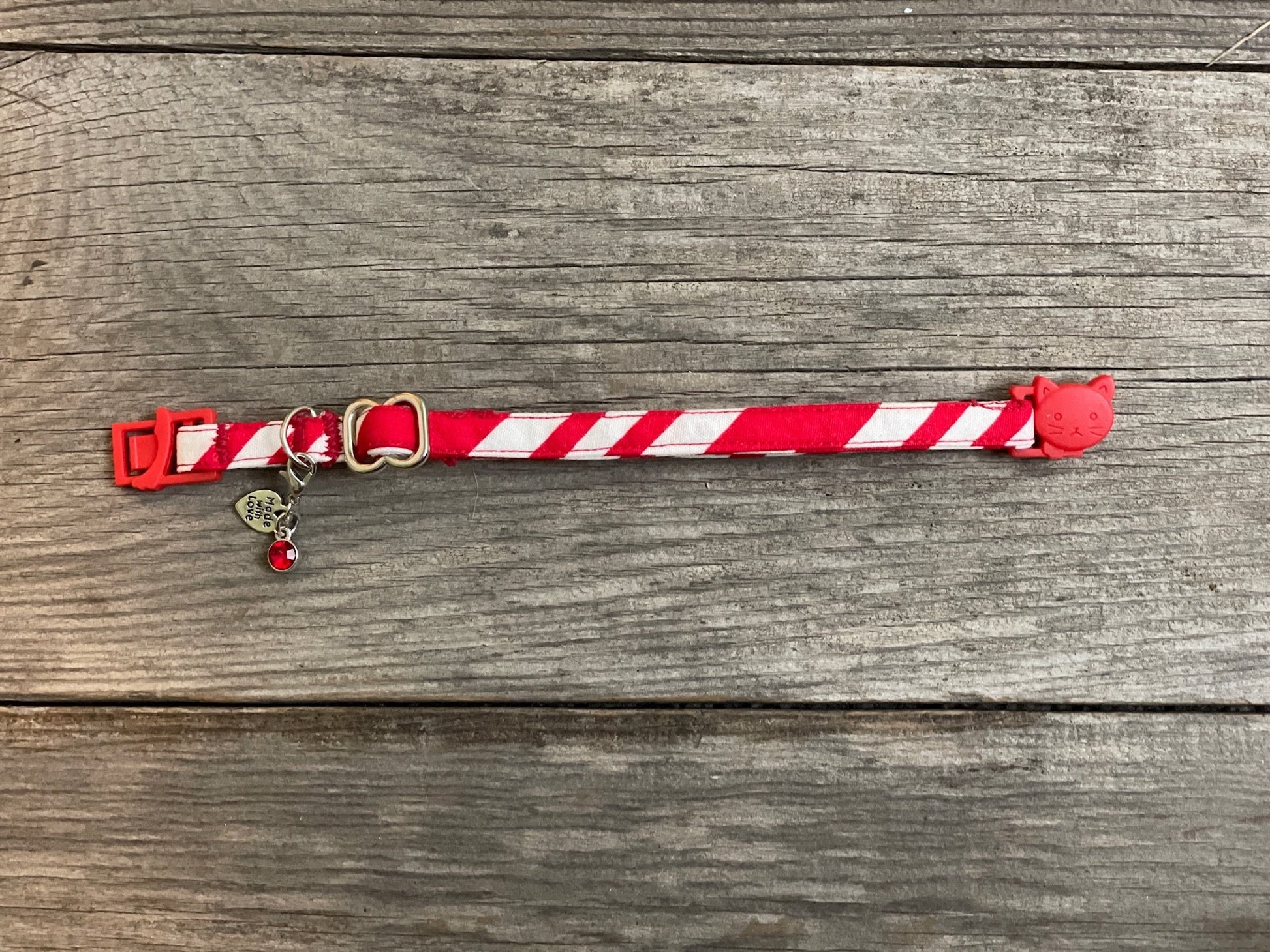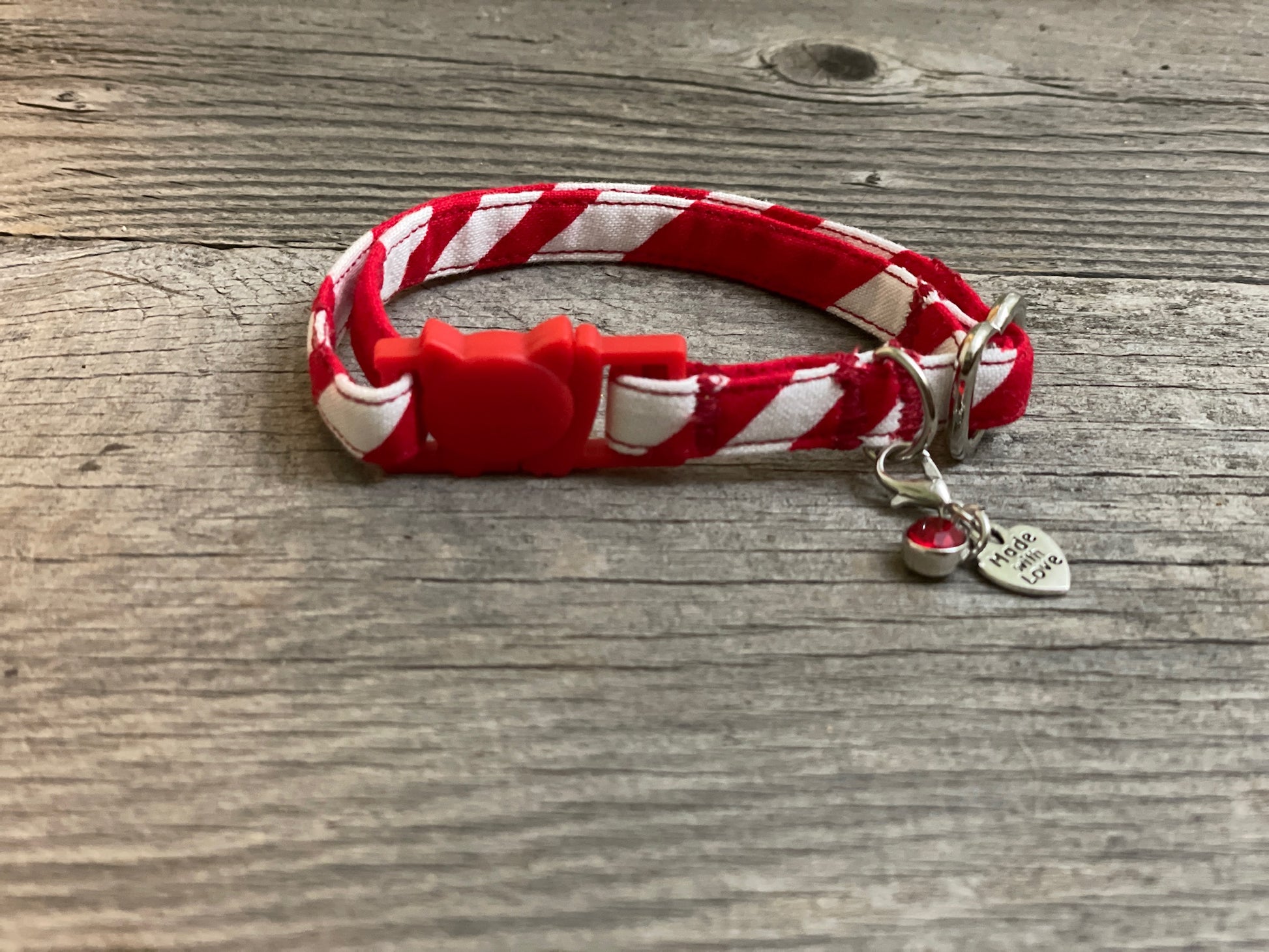Candy cane wishes and mistletoe kisses, it's candy cane season! This joyful collar features fun red and white stripes. It will instantly put anyone in the holiday spirit.