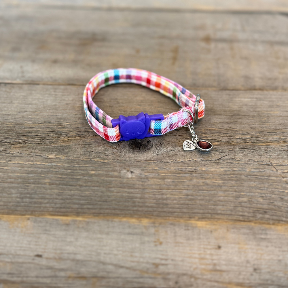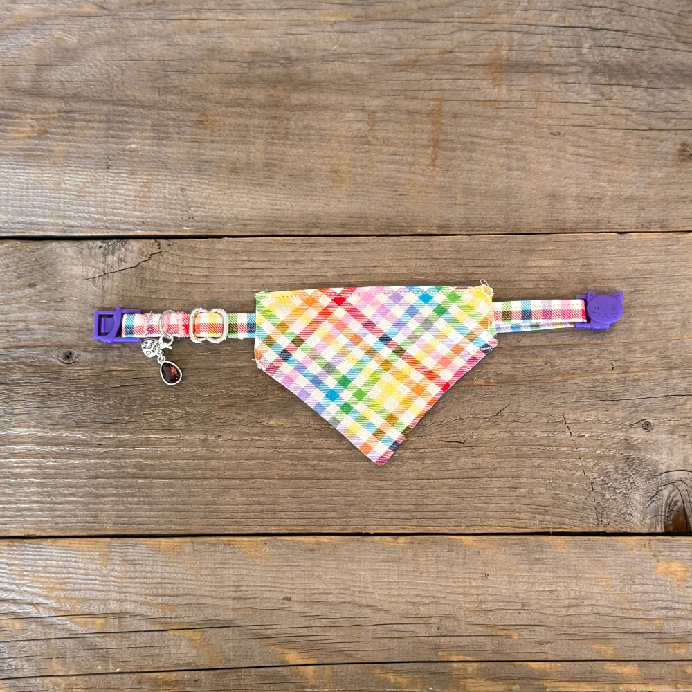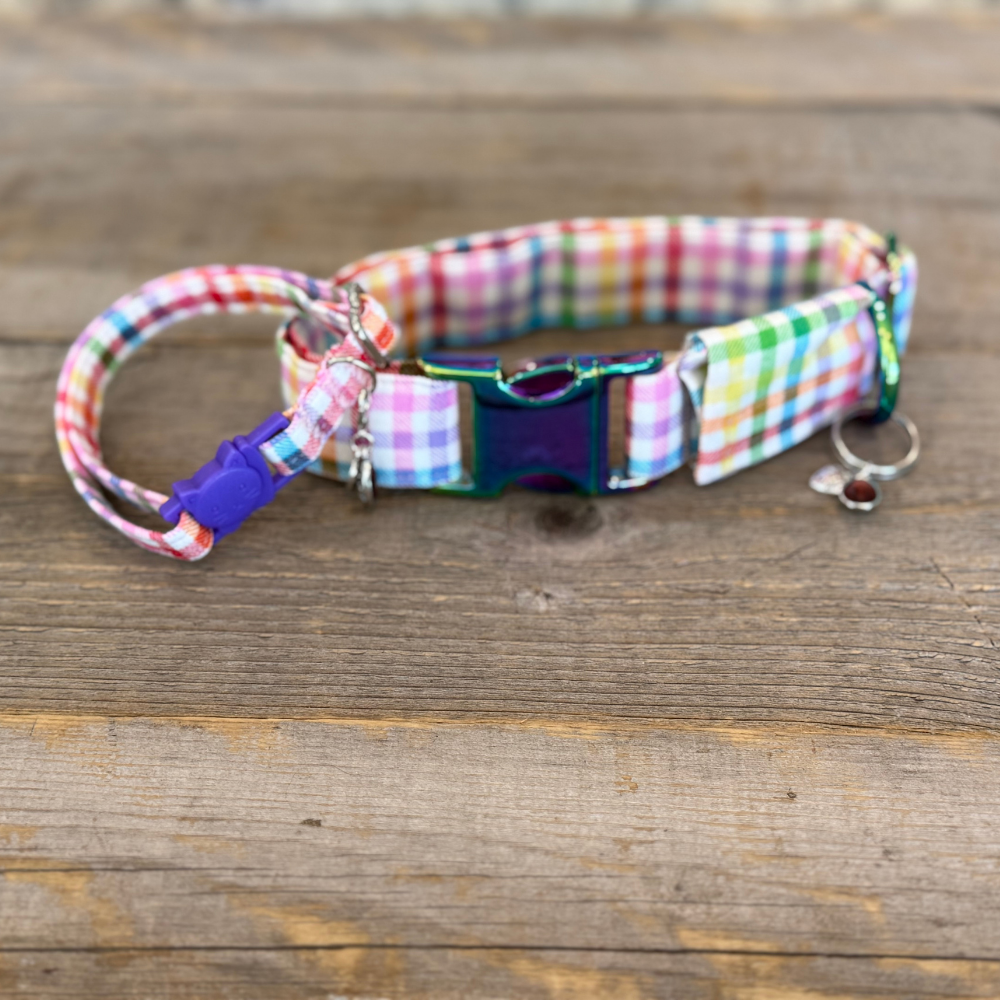 Step into a world of sweetness and charm with the Candyland Collar —where every stitch is bursting with joy! Featuring a vibrant gingham pattern in a rainbow of cheerful hues, this delightful accessory is perfect for stylish kitty. Whether your furry friend is trotting through the park or curled up in their favorite sunny spot, they’ll turn heads with their bright and playful look. Fun, whimsical, and full of personality, the Candyland Collar adds a pop of colorful magic to any adventure. With this collar, every day is a celebration!
