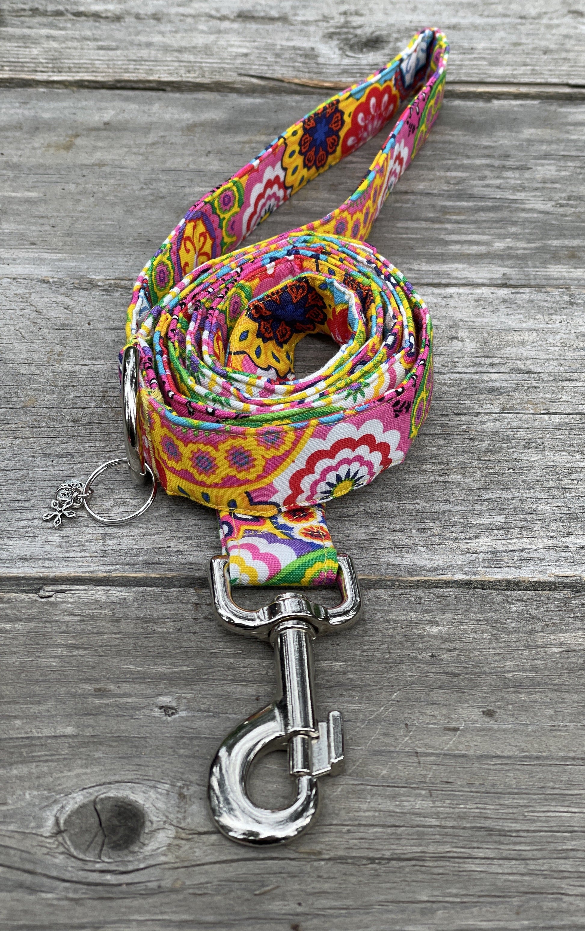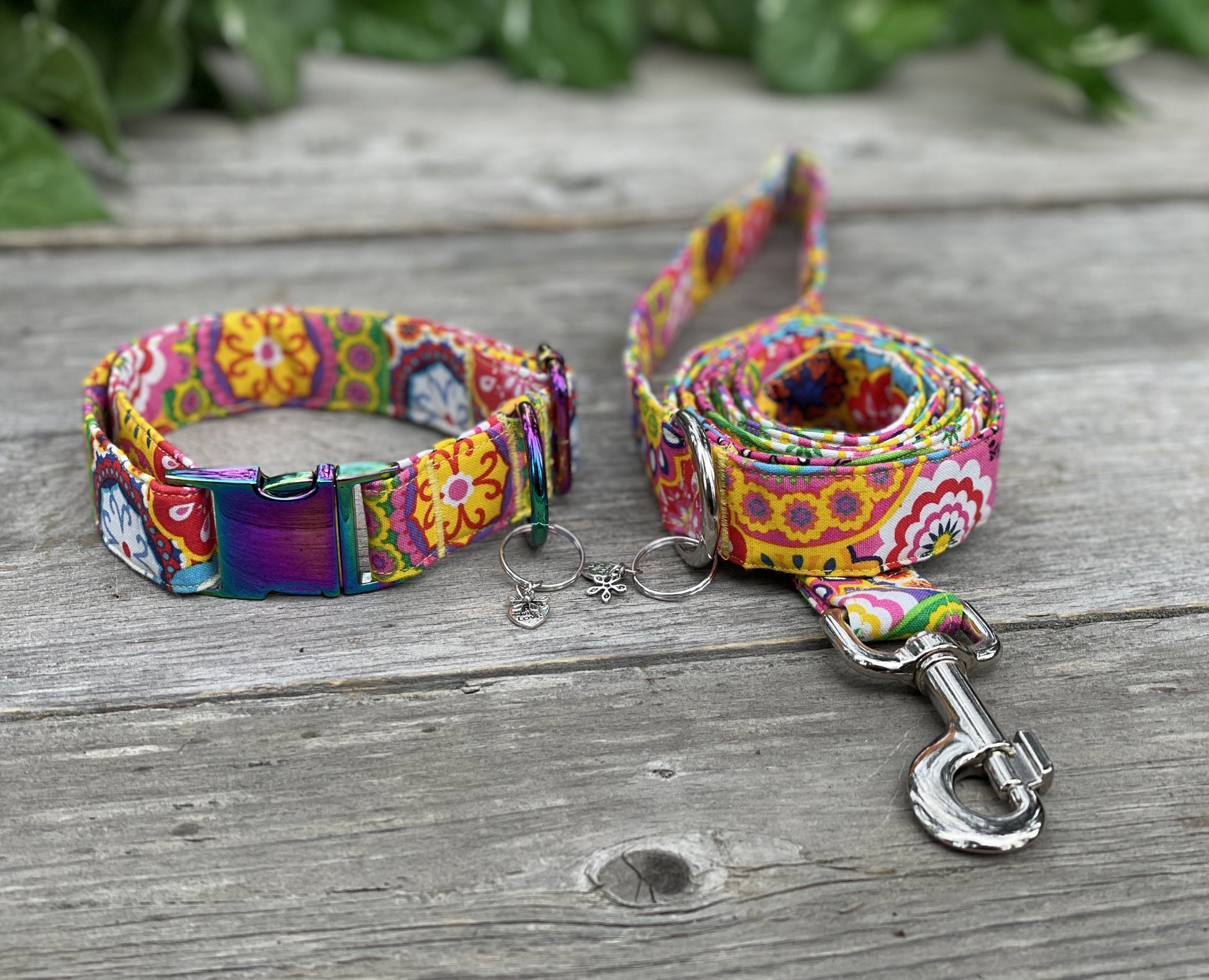 We offer a matching collar to this leash, so don't forget to check it out! All our collars are 1-inch wide and adjustable. We offer small, medium, and large, but are happy to make custom sizes, just send us an email at terrificollars@gmail.com.