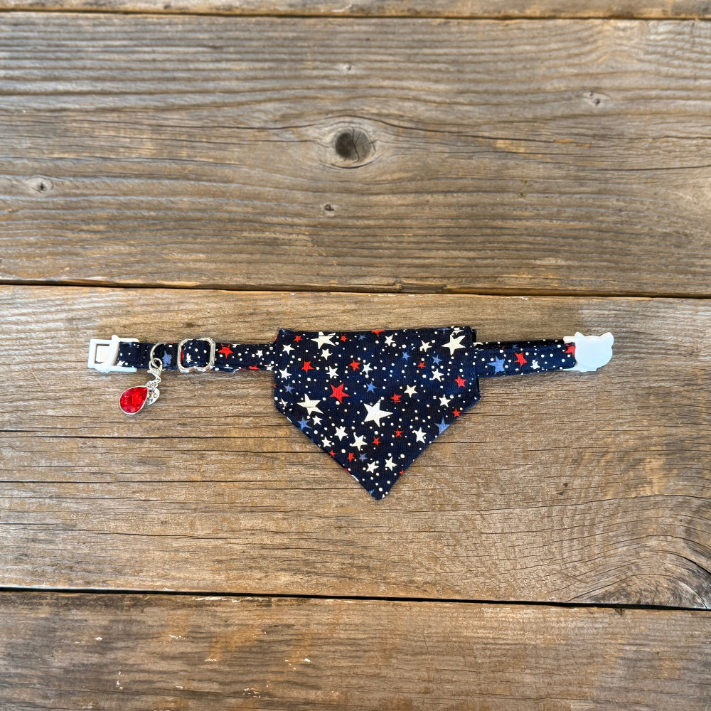 This adorable cat bandanna slides right onto your cat collar. For some extra cuteness, buy the matching cat collars. This bandanna is 'Cosmic Independence' & 'American Celebration' If you'd like a different pairing, just leave us a message in the order notes.