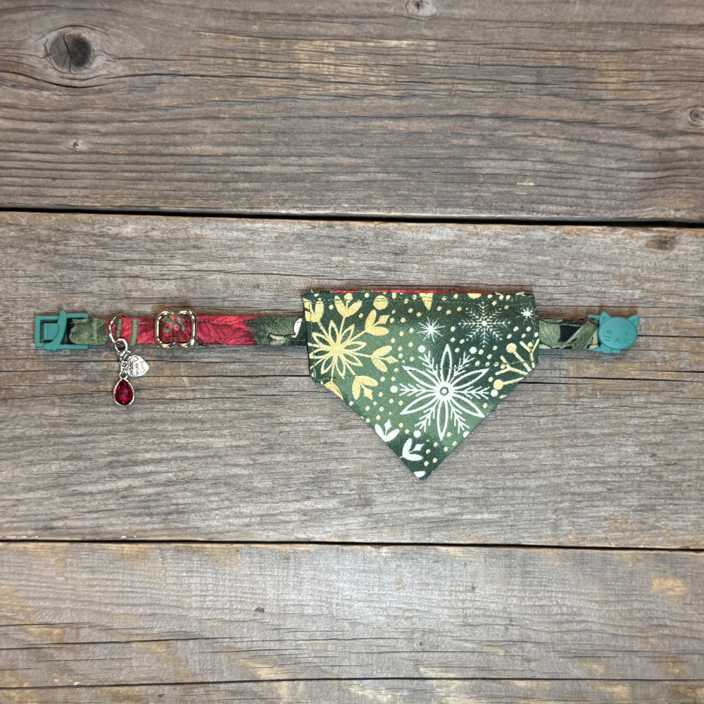 This adorable cat bandanna slides right onto your cat collar. For some extra cuteness, buy the matching cat collar. This bandanna is 'Crimson Grace' and ''Tis the Season' and If you'd like a different pairing, just leave us a message in the order notes.