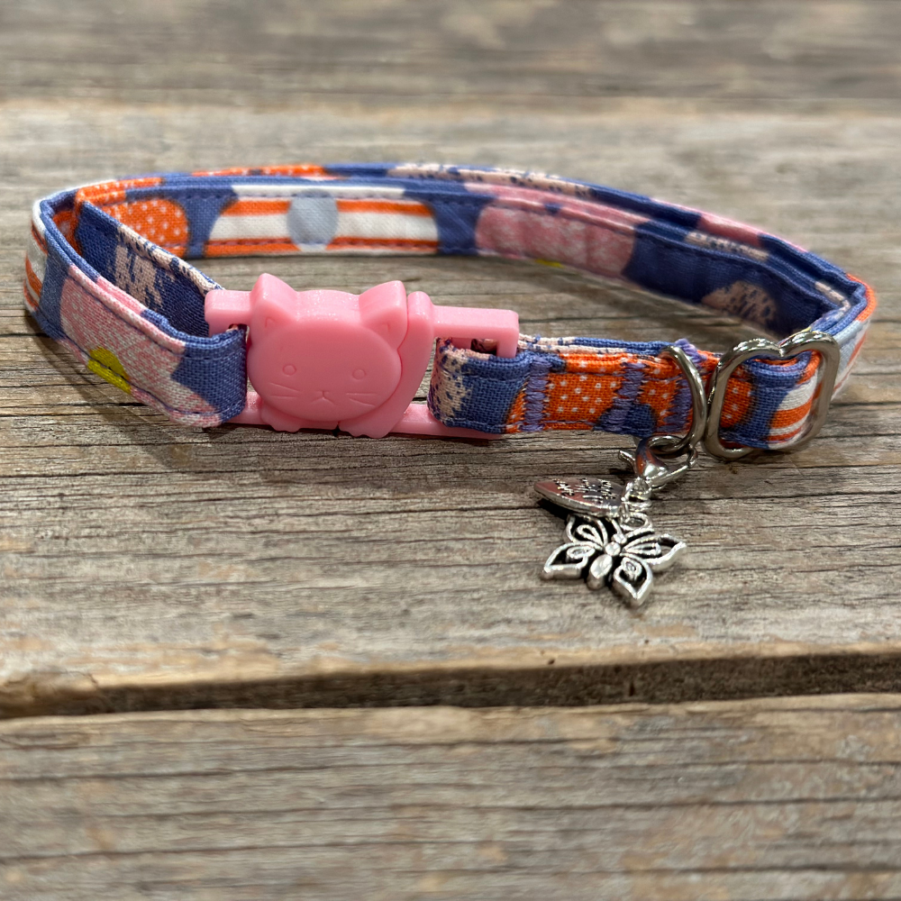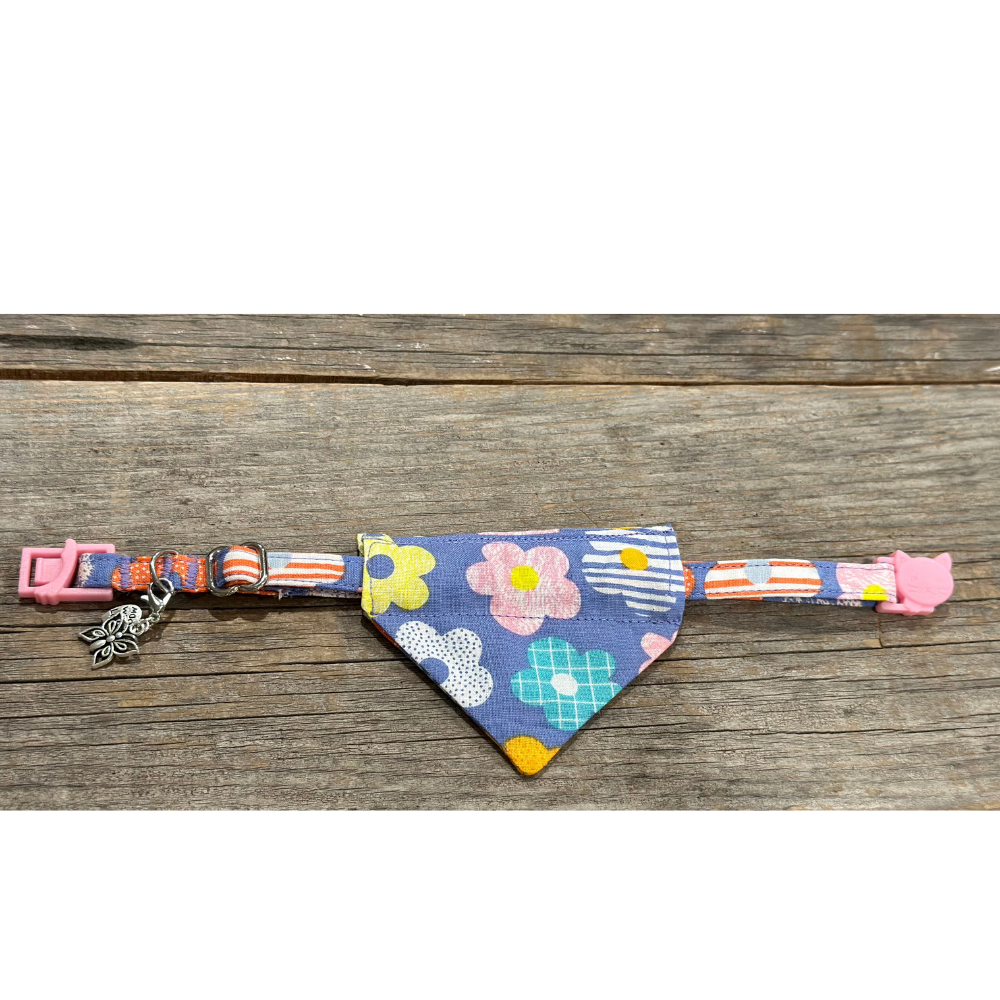 The Flower Power Collar is a burst of vibrant colors and blooming beauty that will make your furry friend the star of every occasion! This collar has a backdrop of rich purple, and cheerful flowers in an array of colors that dance, creating a playful and charming. Perfect for cat who love to stand out and spread smiles wherever they go, this collar is sure to become a cherished part of your pet's wardrobe.