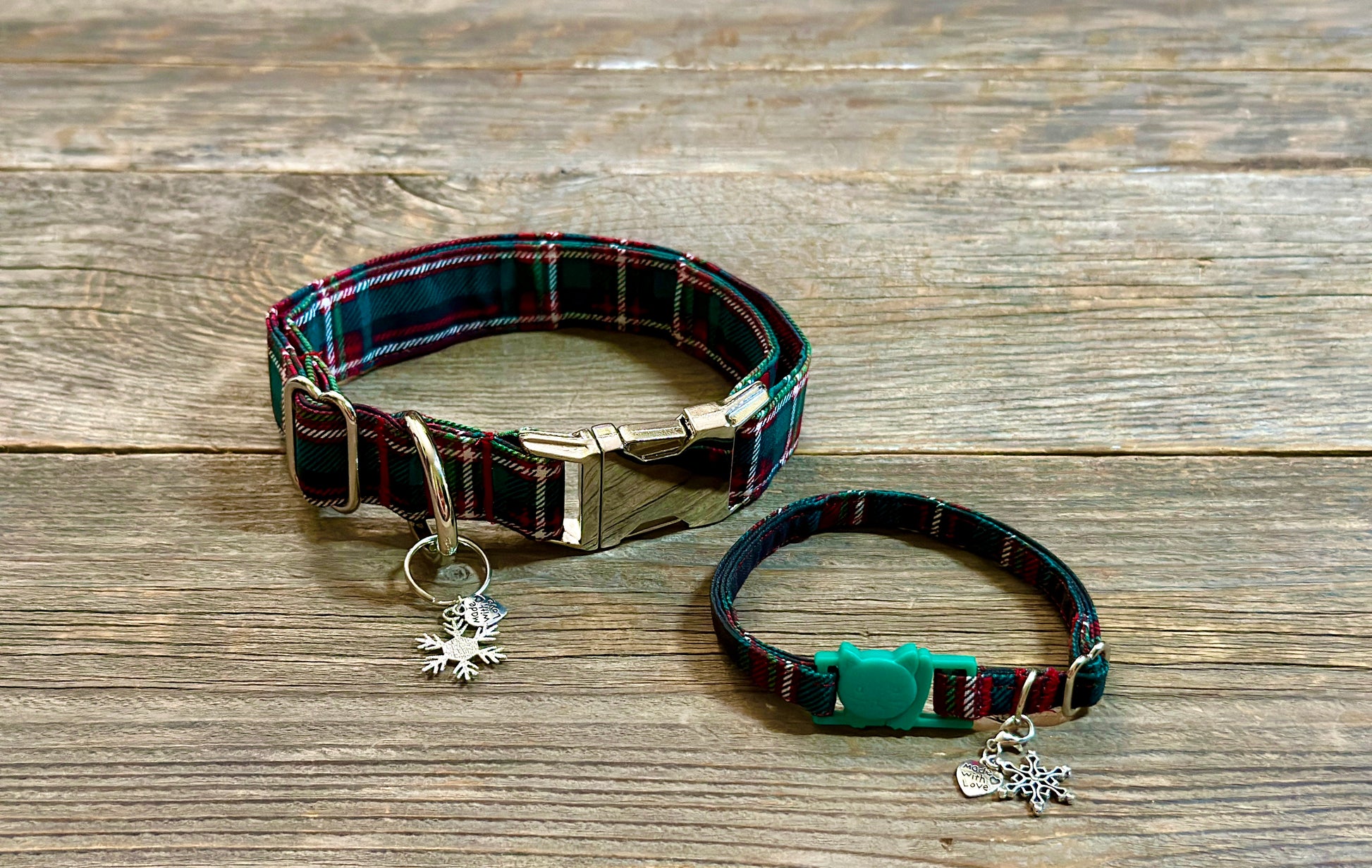 This collar has a matching leash option, don't forget to check it out! Our leashes are 5-foot long, 1-inch wide, and come with a heavy-duty silvertone metal spring-loaded hook that attaches to the D-ring on your pet's collar**. Each collar comes with a coordinating charm*. This hand-crafted collar is made with 100% cotton fabric and your choice of a metal or plastic buckle with a matching adjuster. Each collar is made with a reinforced metal D-ring. This elegant collar is sure to last for years.