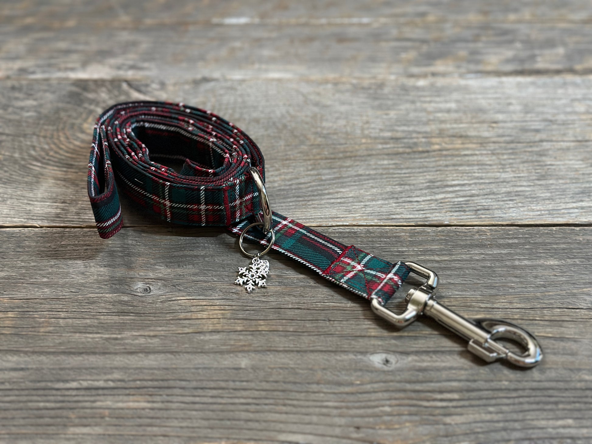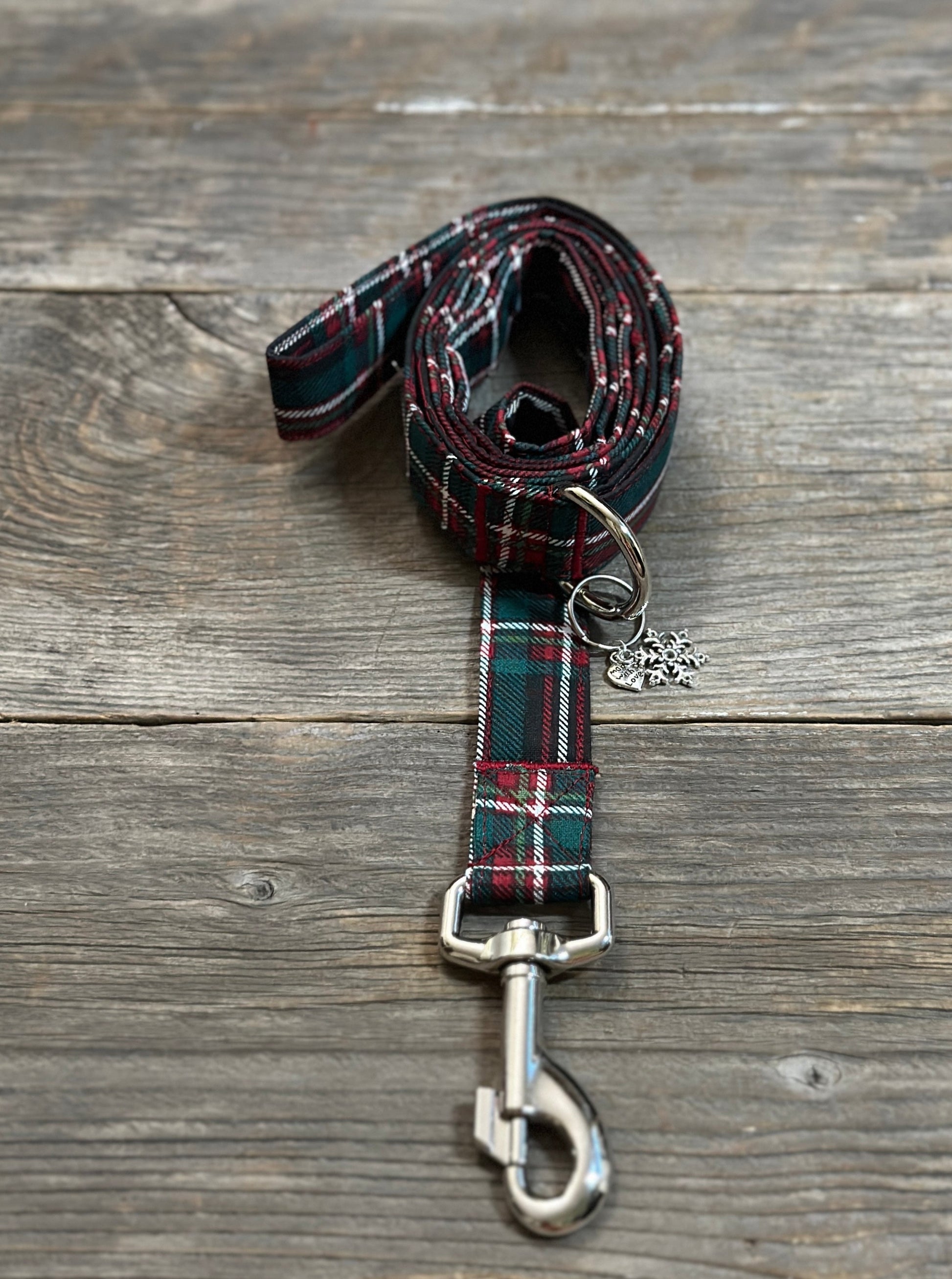 Our dog leashes are 1" wide and 5' long. Upon special request, we can make leashes longer or shorter. We can also make them 5/8" wide.