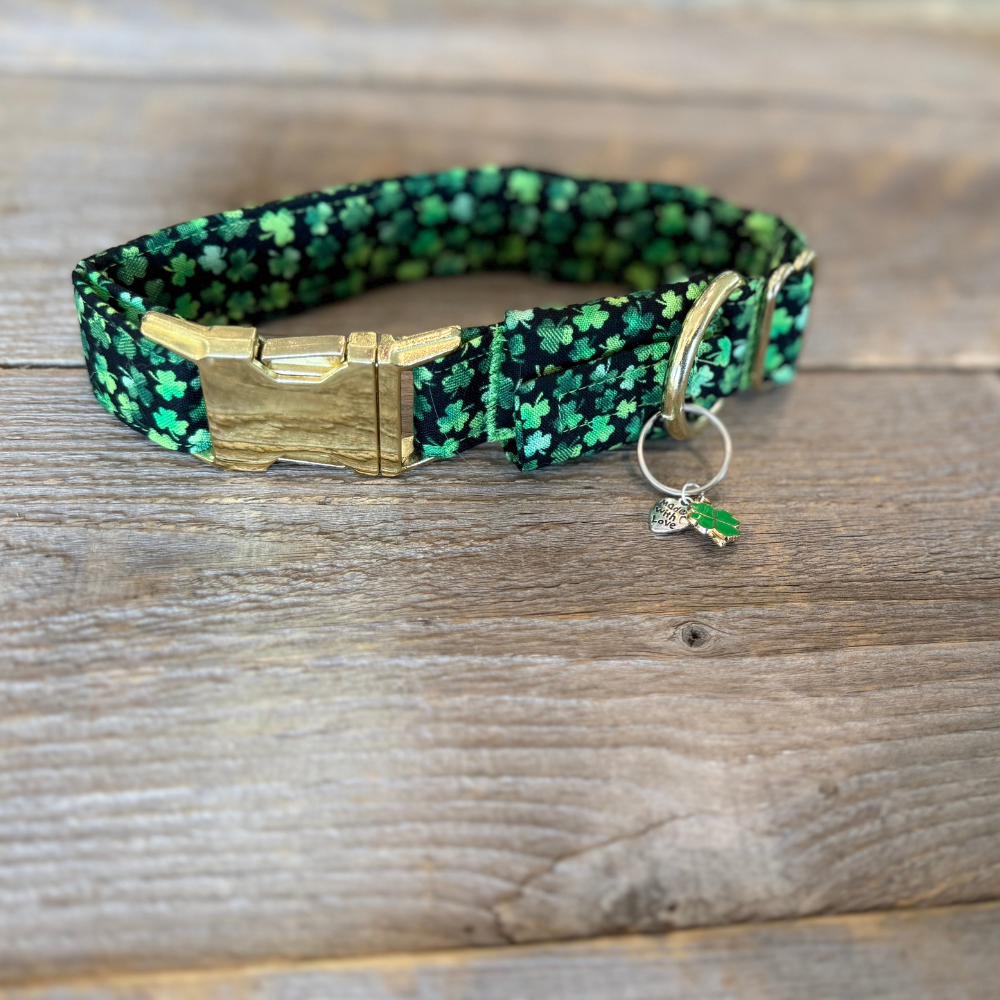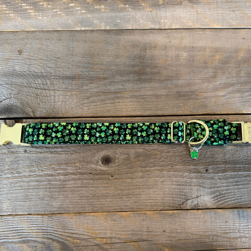 Let your pup prance through a field of endless fortune with the Clover Confetti collar! A playful cascade of lucky shamrocks tumbles across a deep, midnight backdrop, as if the winds of the Emerald Isle have scattered tiny charms just for your furry friend. Every step they take is a dance with destiny, every wag of the tail a wink from a mischievous leprechaun. Whether they're chasing rainbows or simply soaking up the magic of everyday adventures, the Clover Confetti collar ensures they do it in style—with a sprinkle of luck and a whole lot of charm!