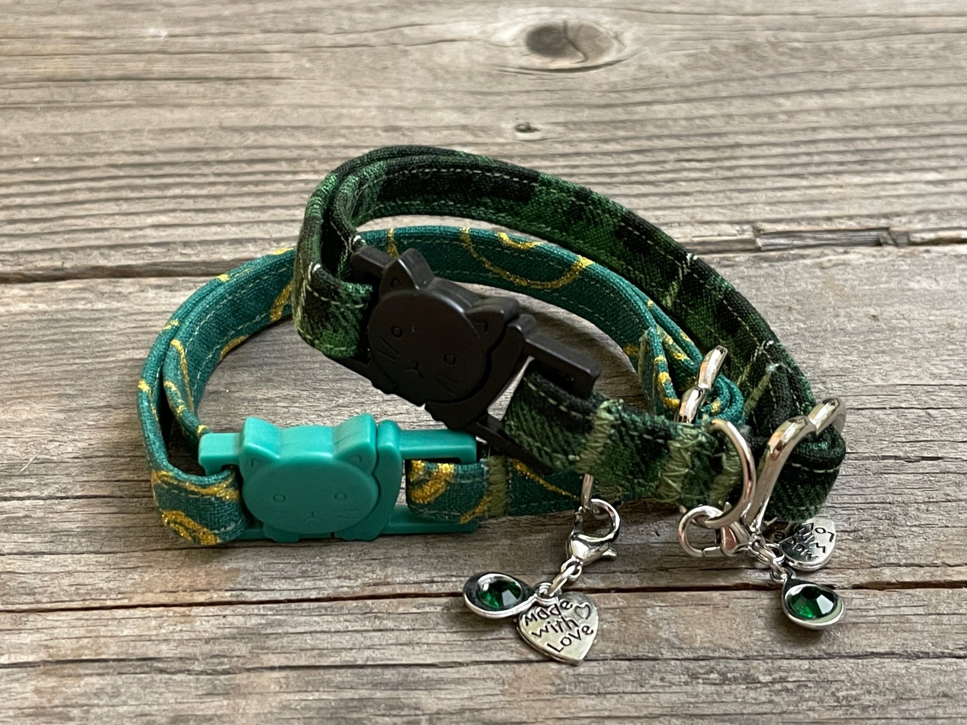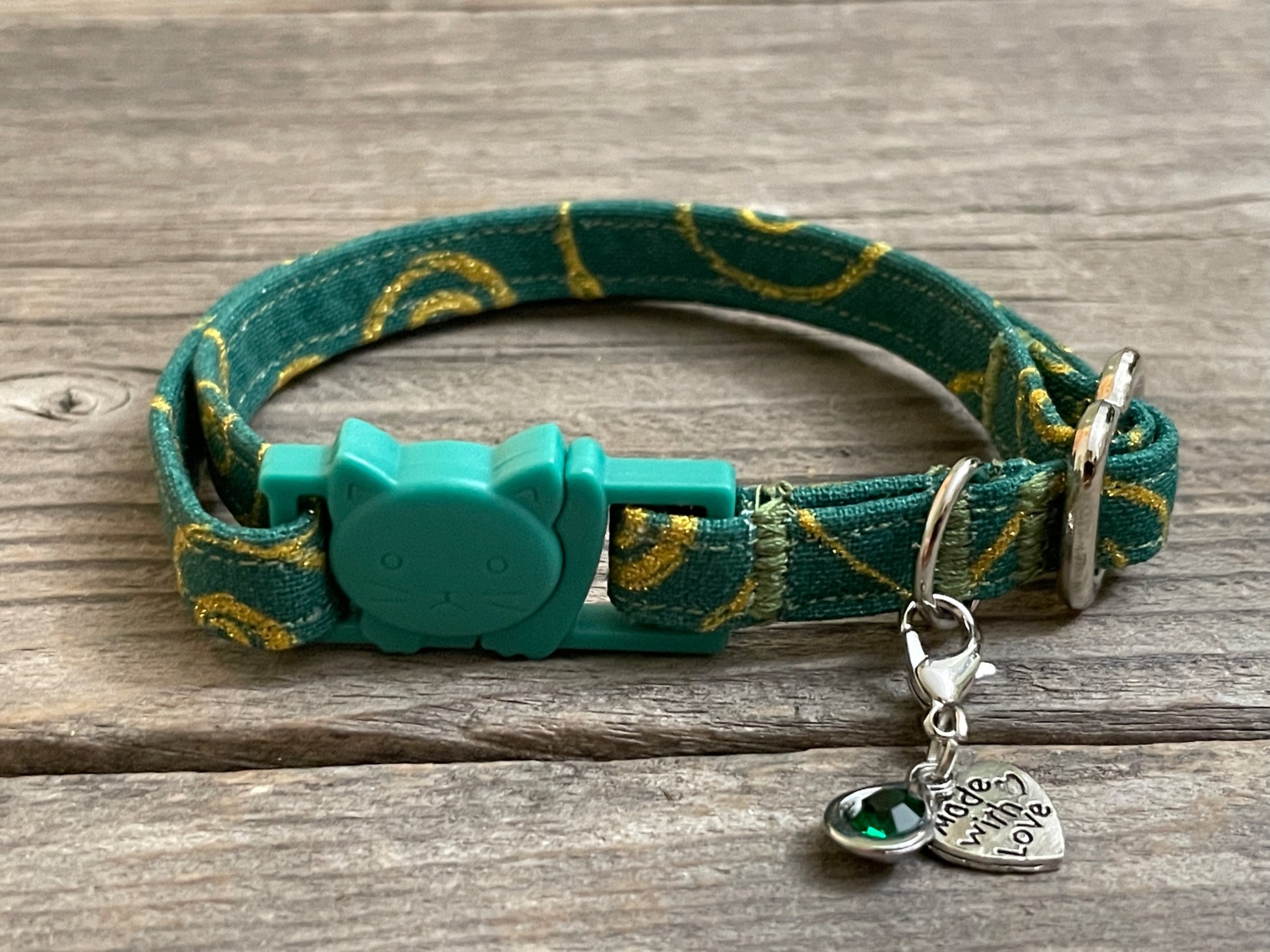 Each collar comes with a coordinating charm*. This hand-crafted collar is made with 100% cotton fabric and a breakaway clasp. This elegant collar is sure to last for years.