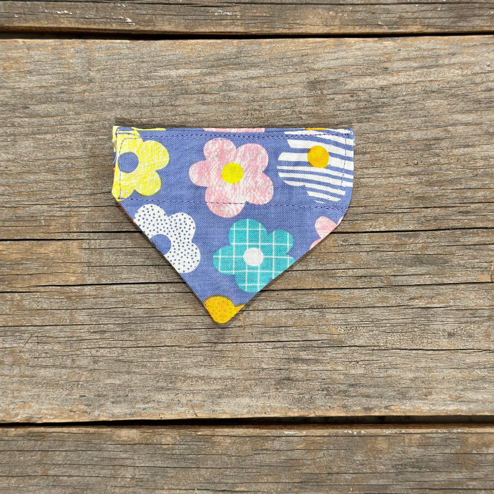 This adorable cat bandanna slides right onto your cat collar. For some extra cuteness, buy the matching cat collars. This bandanna is 'Flower Power'. If you'd like a different pairing, just leave us a message in the order notes.