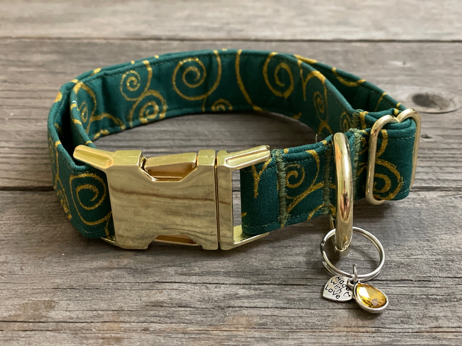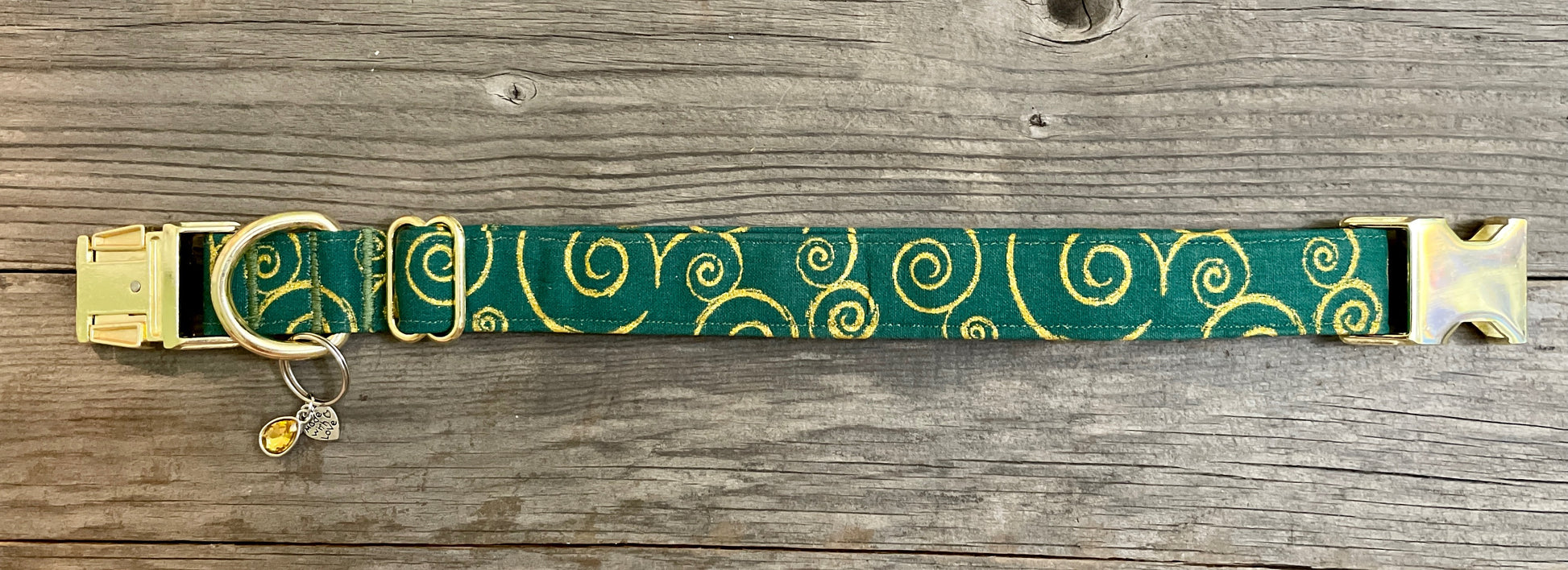 You’d have to be drunk to not buy this collar! This pattern’s golden-metallic swirls shimmer on its shamrock green background. This is the perfect collar for any high-spirited pup looking for some shenanigans.