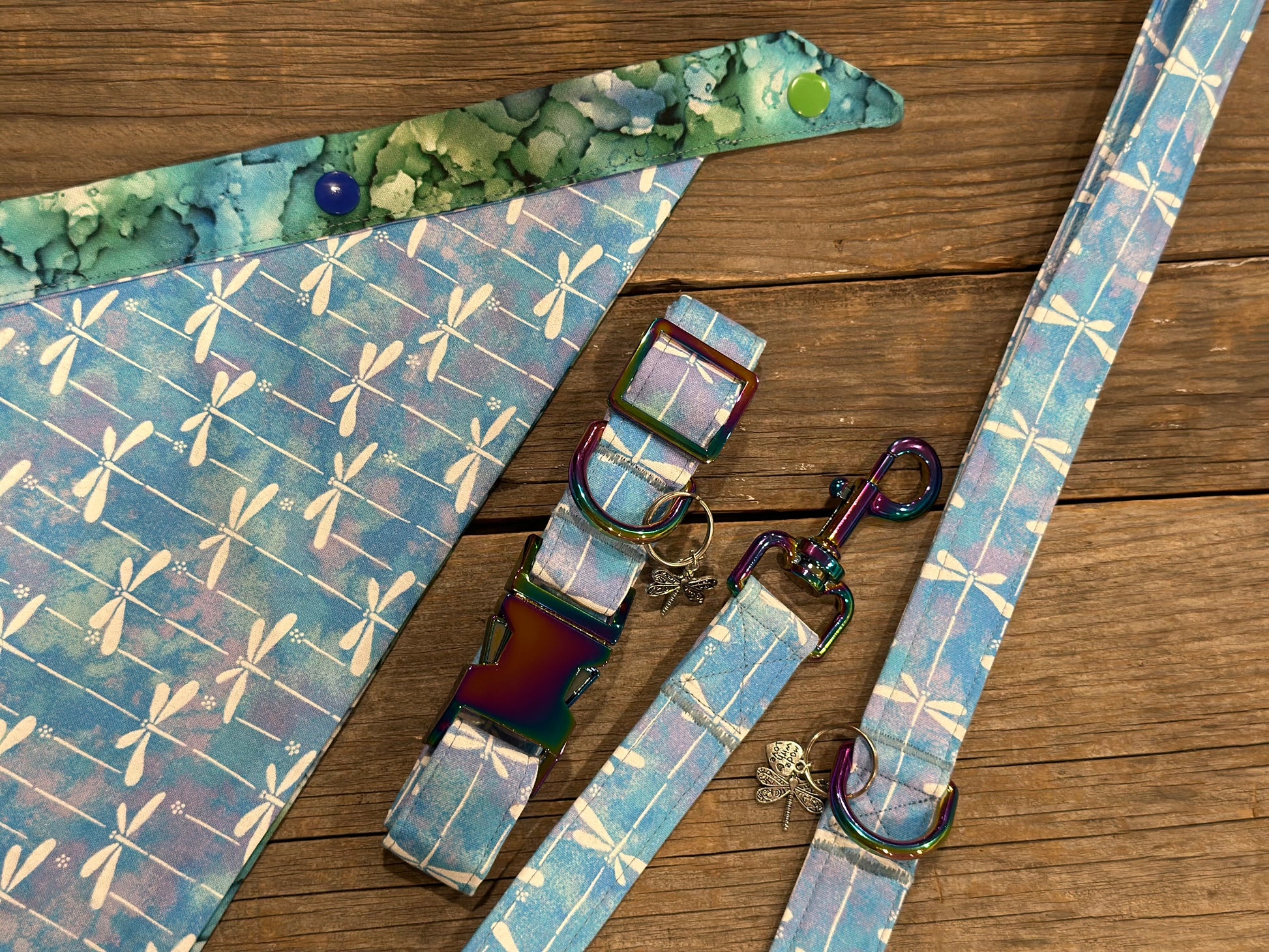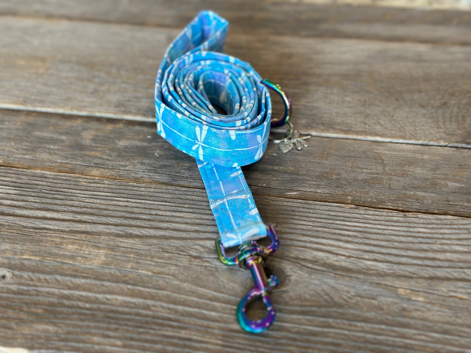 Step into the realm of the beauty of the Dragonfly Dreams Leash. Inspired by the delicate grace of dragonflies and the mesmerizing allure of watercolor artistry, this leash is captivating to any eye and looks stunning on any animal. The Dragonflies are adorned in hues of white, blue, and purple against a softly painted backdrop. These colors will make any dream come true.