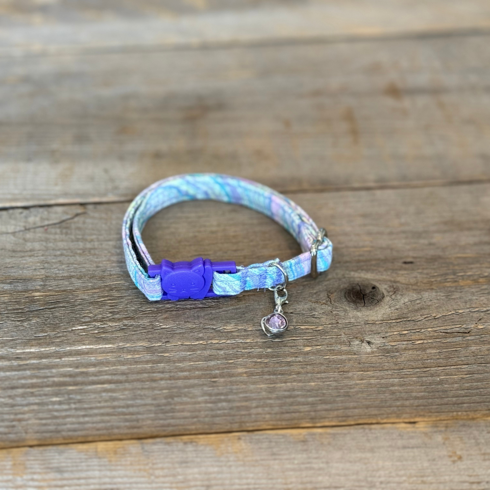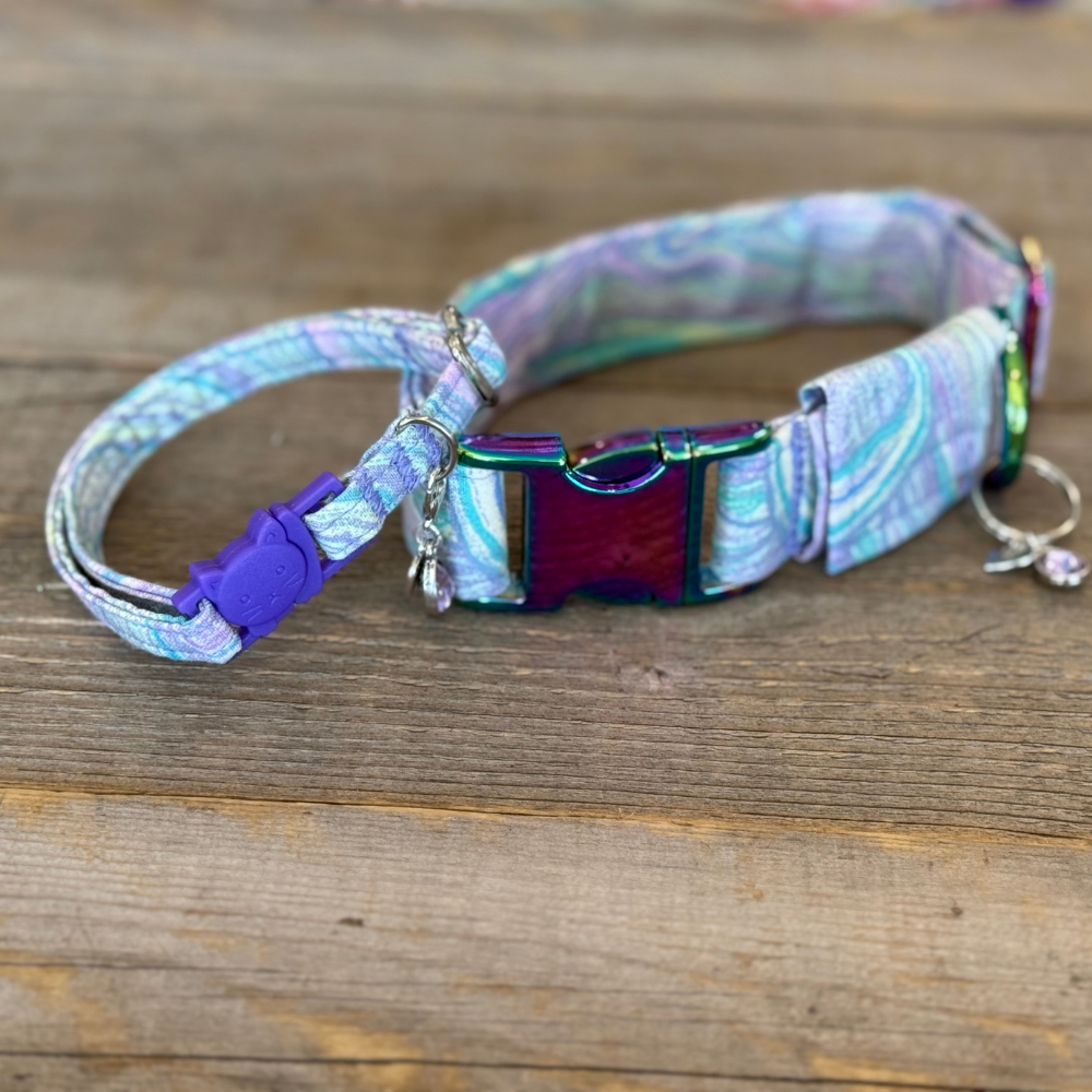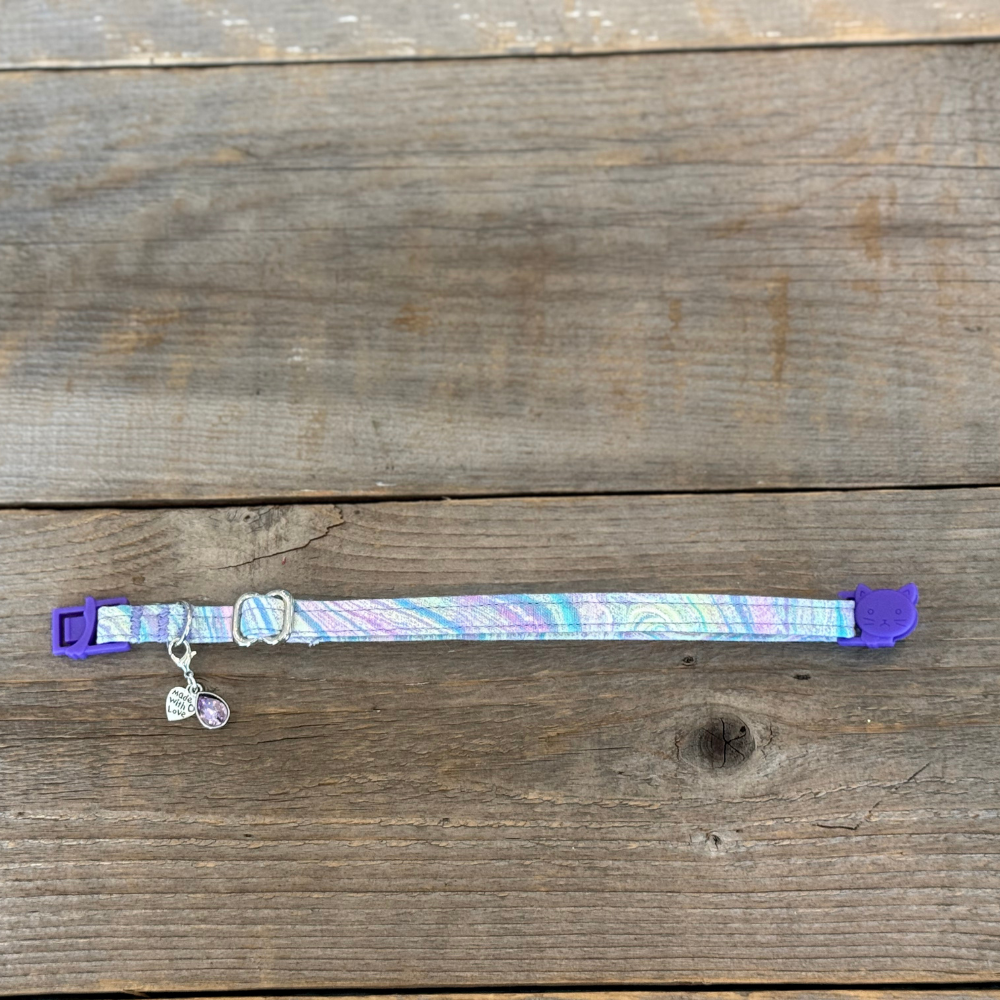 Drift into a world of sweet serenity with the Cotton Candy Dreams Collar—where swirls of pastel magic dance like a dreamy sky at dusk! With a mesmerizing marbled pattern in soft pinks, blues, purples, and greens, this enchanting accessory transforms any kitty into a floating cloud of whimsy. Whether they’re twirling through the backyard or curled up in a cozy nap, they’ll radiate charm and elegance with every step. Light, airy, and oh-so-dreamy, the Cotton Candy Dreams collar is a sprinkle of pure delight for kitty who love a touch of fantasy!