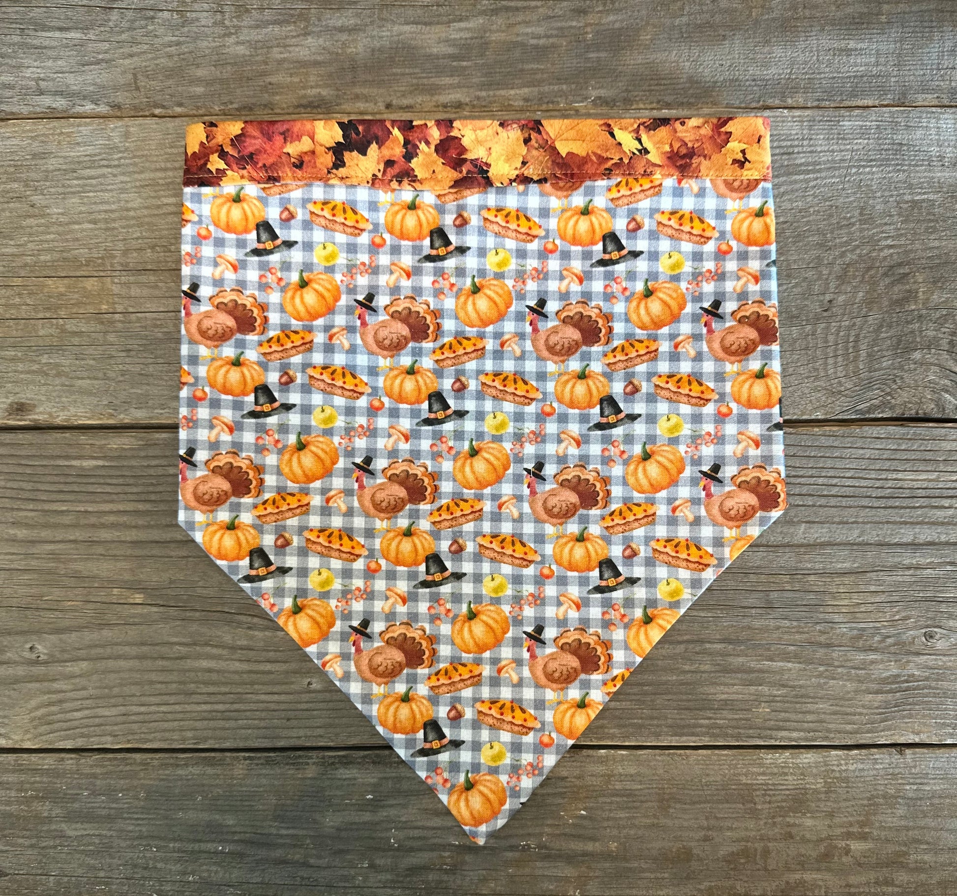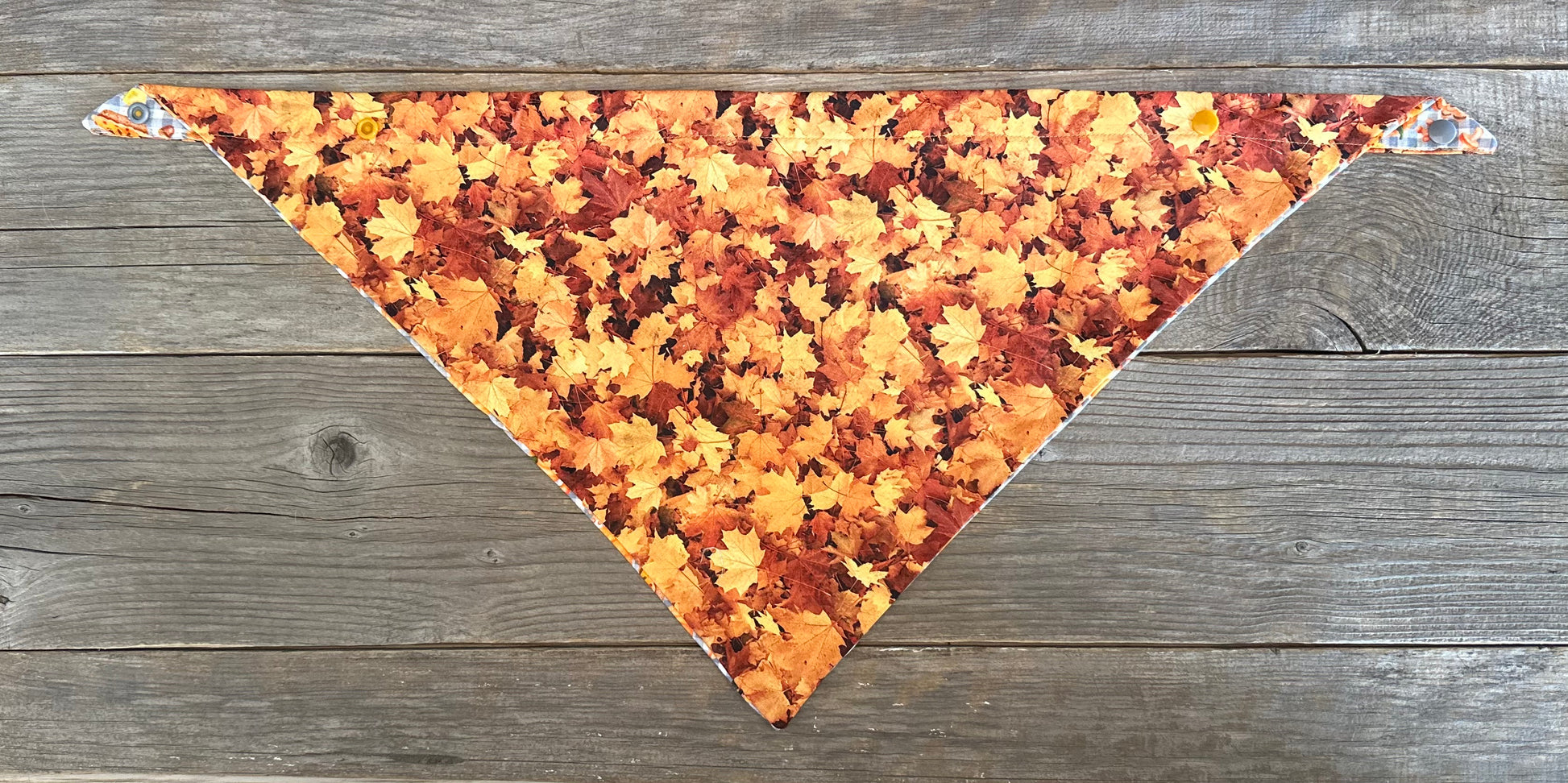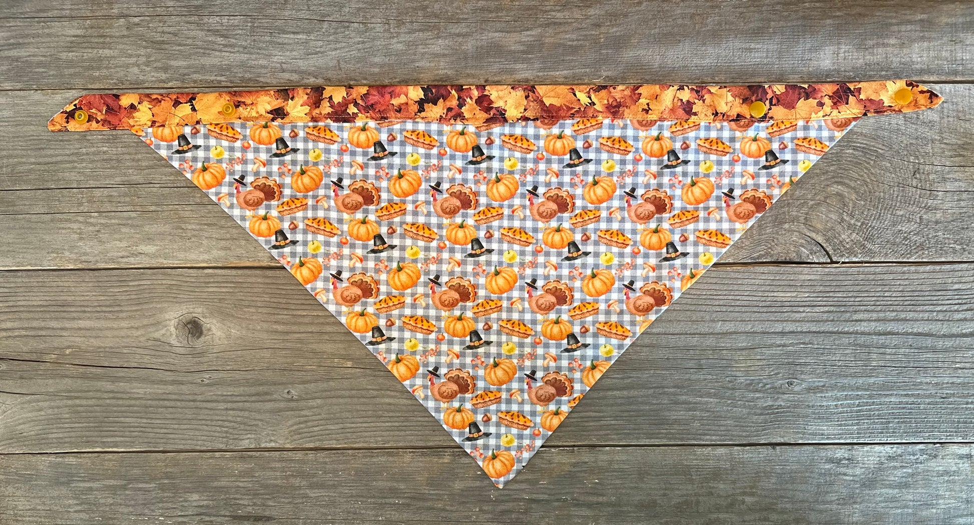 This bandana is 'Feelin’ Full' and 'Rake It In.' The tie strip of the bandana is 30" long and has snaps for adjustability. If you'd like a different pairing, just leave us a message in the order notes.