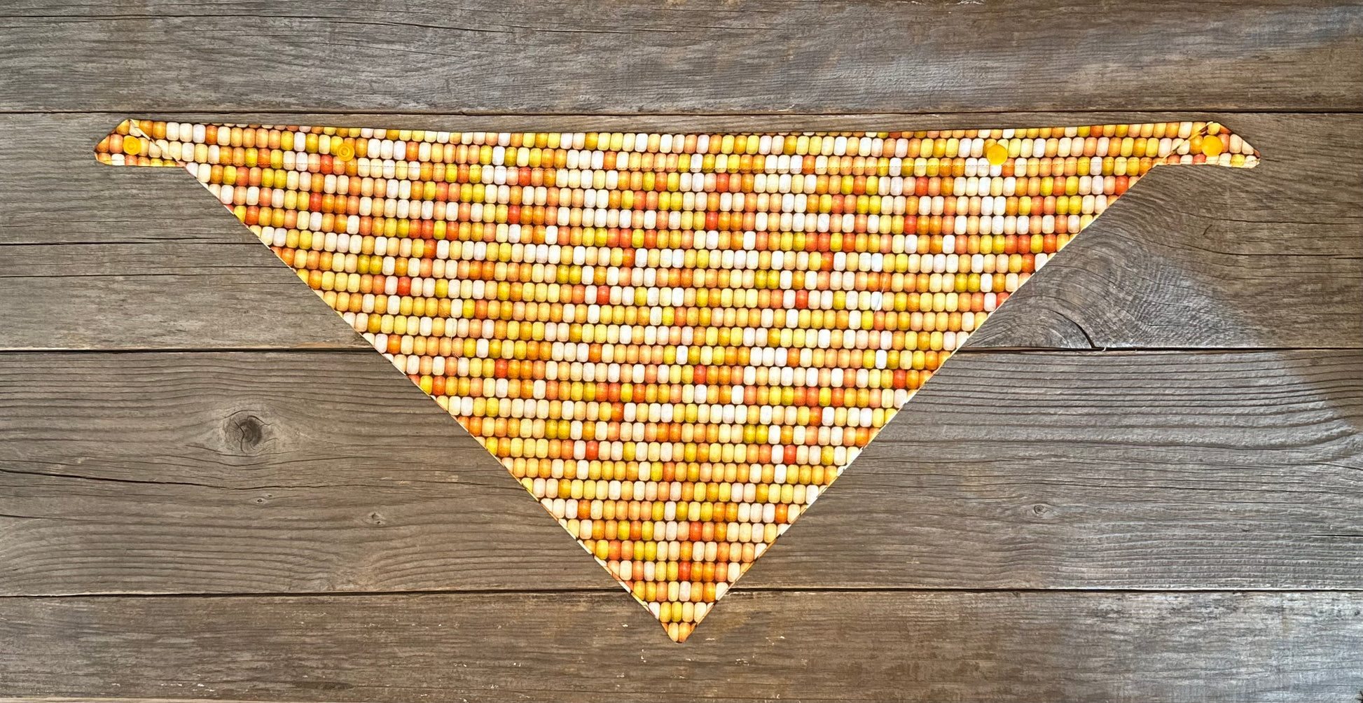 This bandana is 'I’m All Ears.' The tie strip of the bandana is 30" long and has snaps for adjustability. If you'd like a different pairing, just leave us a message in the order notes.