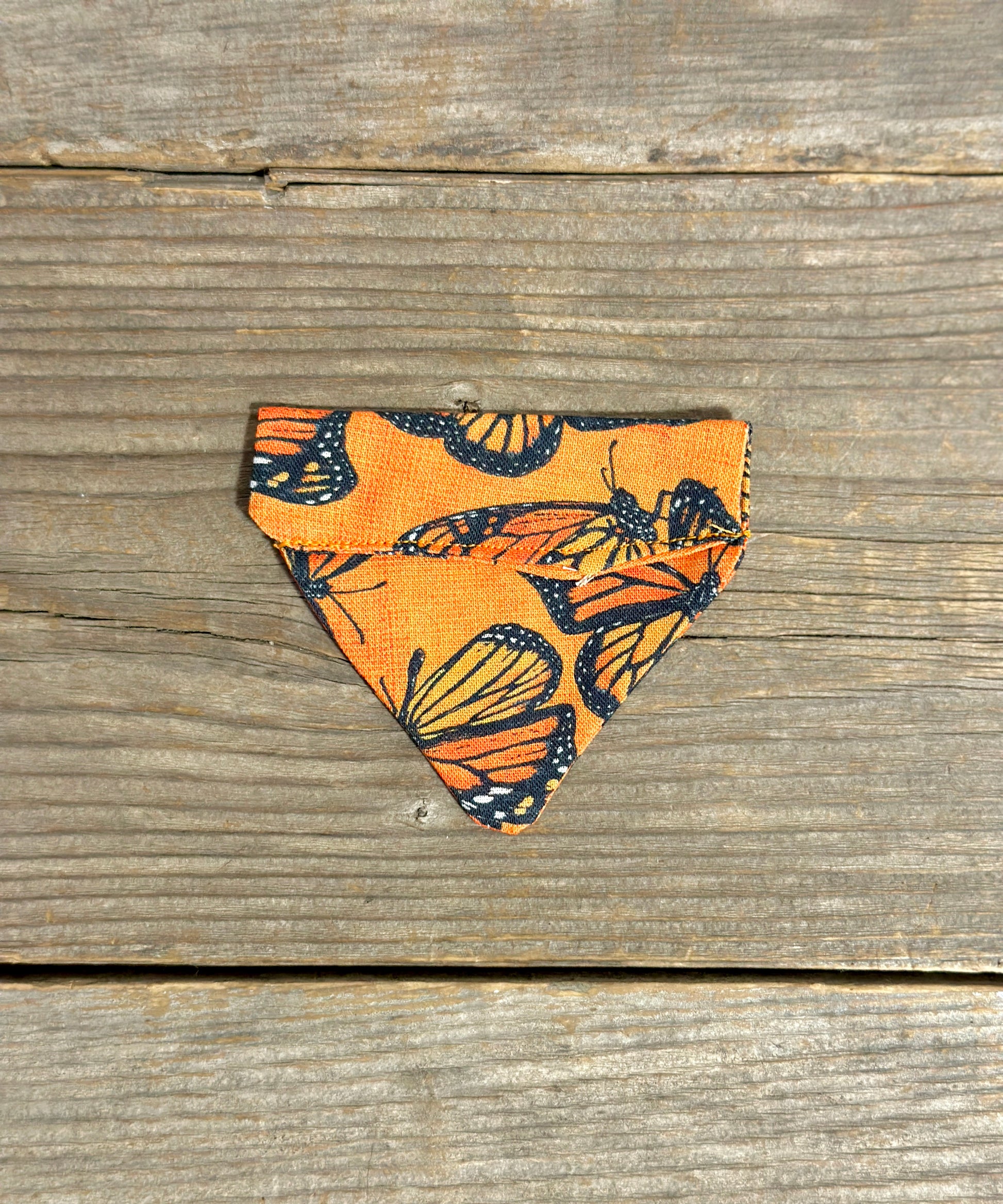 This adorable cat bandanna slides right onto your cat collar. For some extra cuteness, buy the matching cat collar. This bandanna is 'Butterfly Grove.' If you'd like a different pairing, just leave us a message in the order notes.