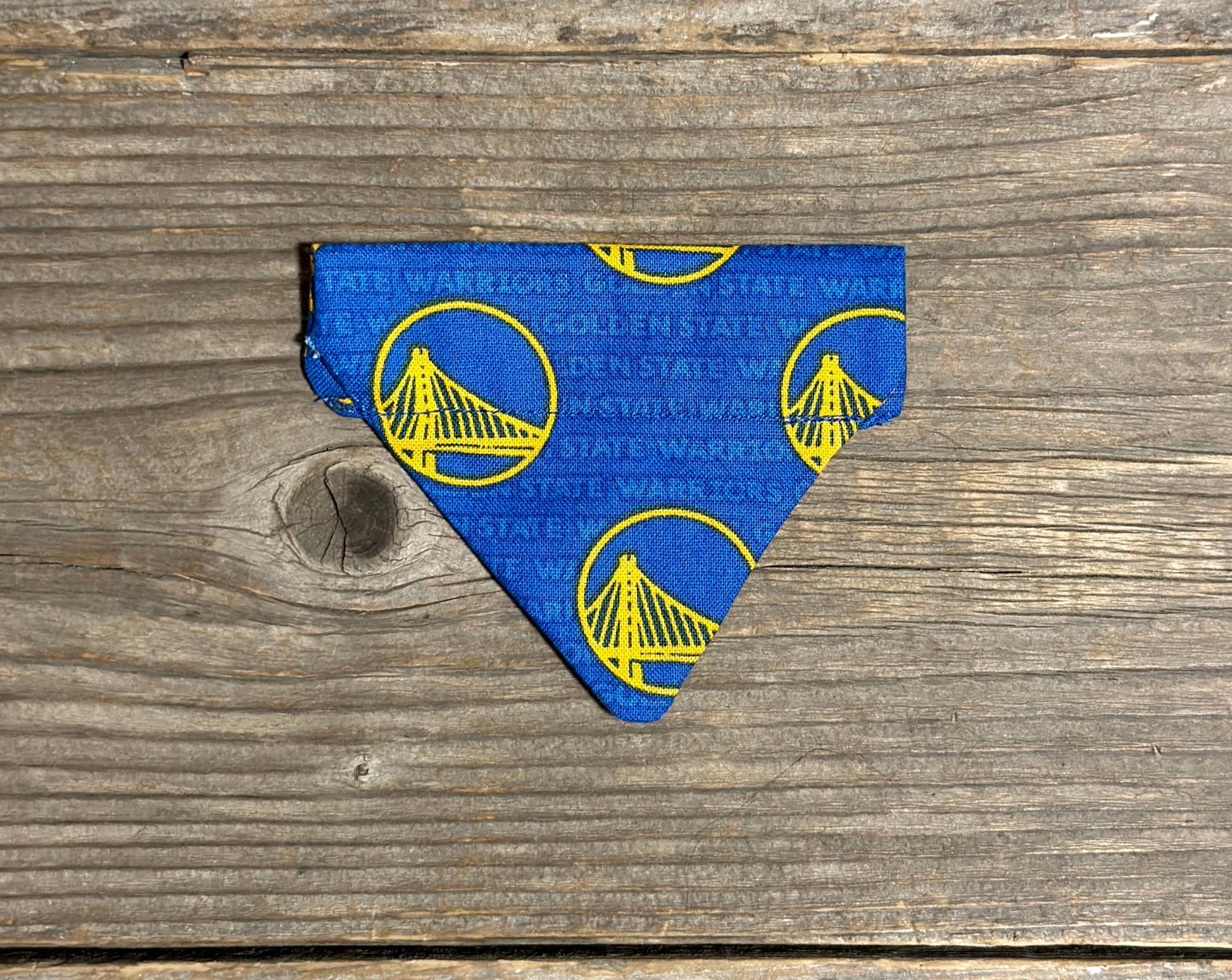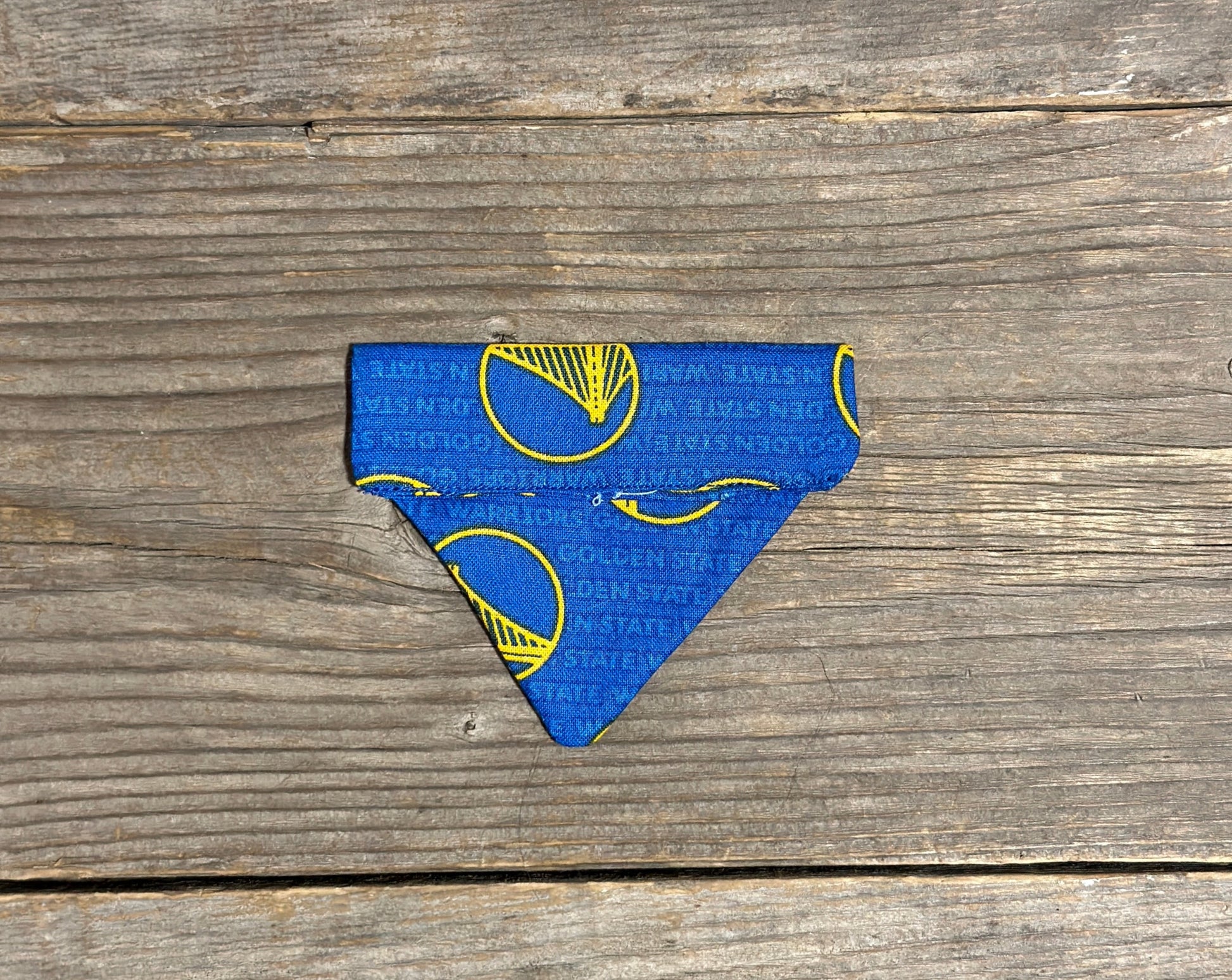 This sporty pattern is perfect for any Golden State Warriors fan! This adorable cat bandanna slides right onto your cat collar.