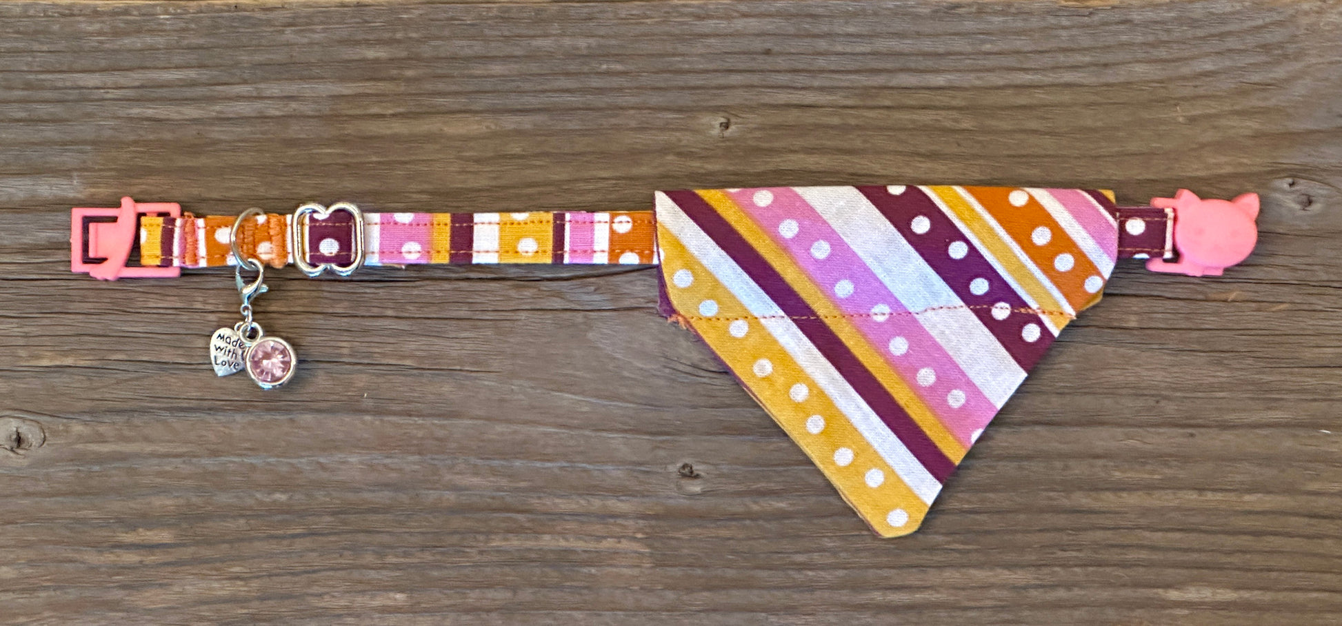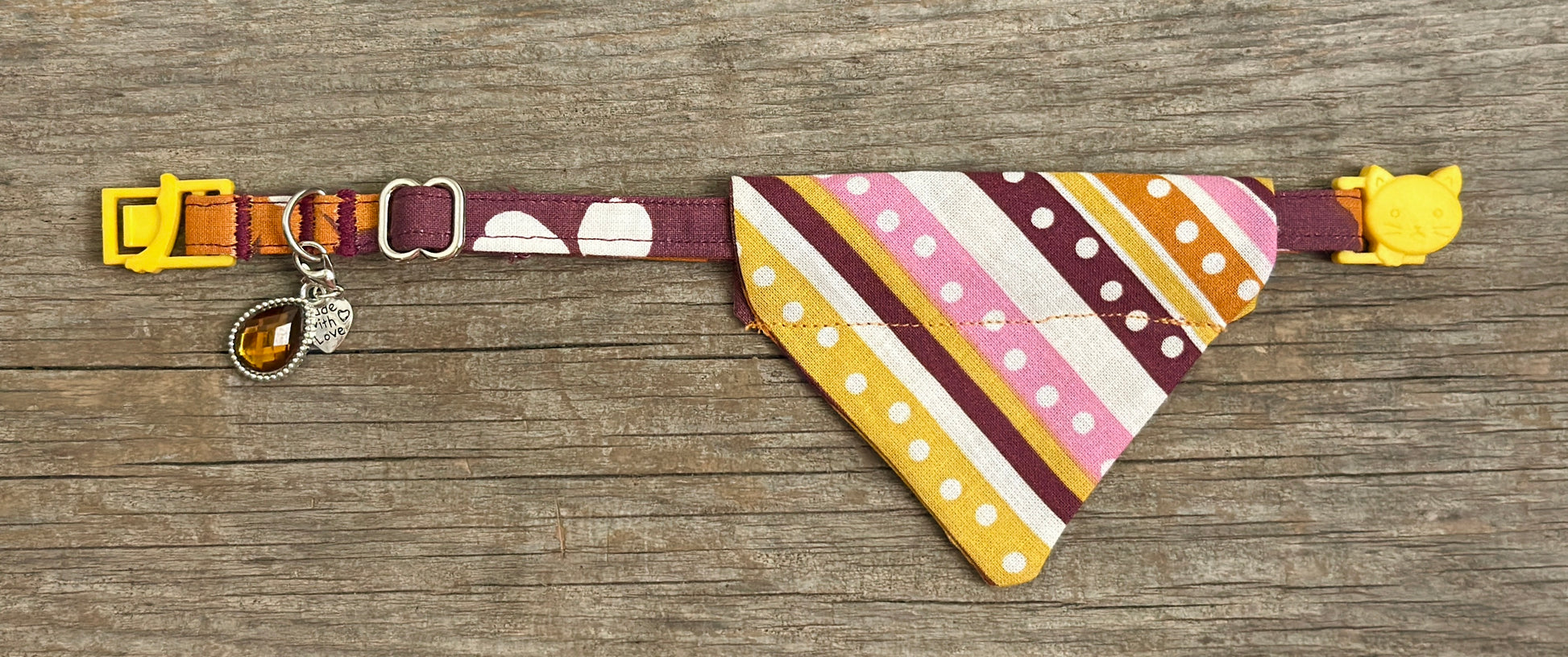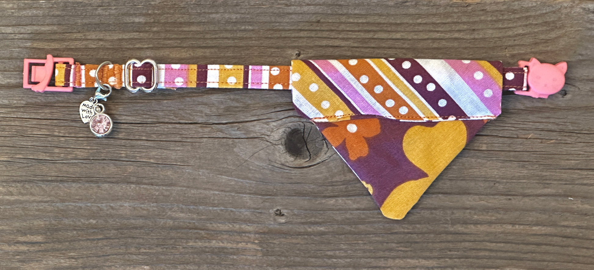 This adorable cat bandanna slides right onto your cat collar. For some extra cuteness, buy the matching cat collars. This bandanna is 'Groovy, Baby!' and 'Yeah, Baby! Yeah!' If you'd like a different pairing, just leave us a message in the order notes.