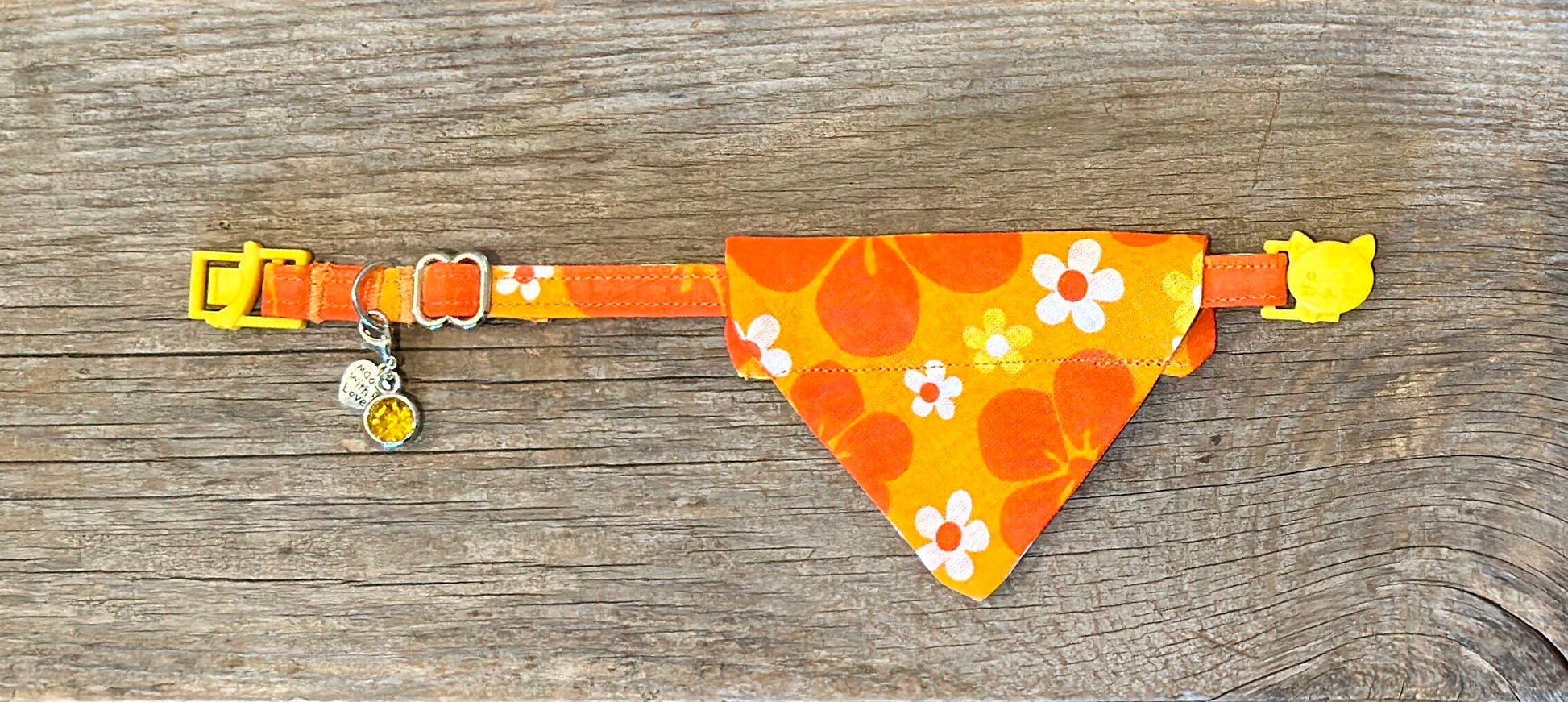 This adorable cat bandanna slides right onto your cat collar. For some extra cuteness, buy the matching cat collar. This bandanna is 'Island Time.' If you'd like a different pairing, just leave us a message in the order notes.