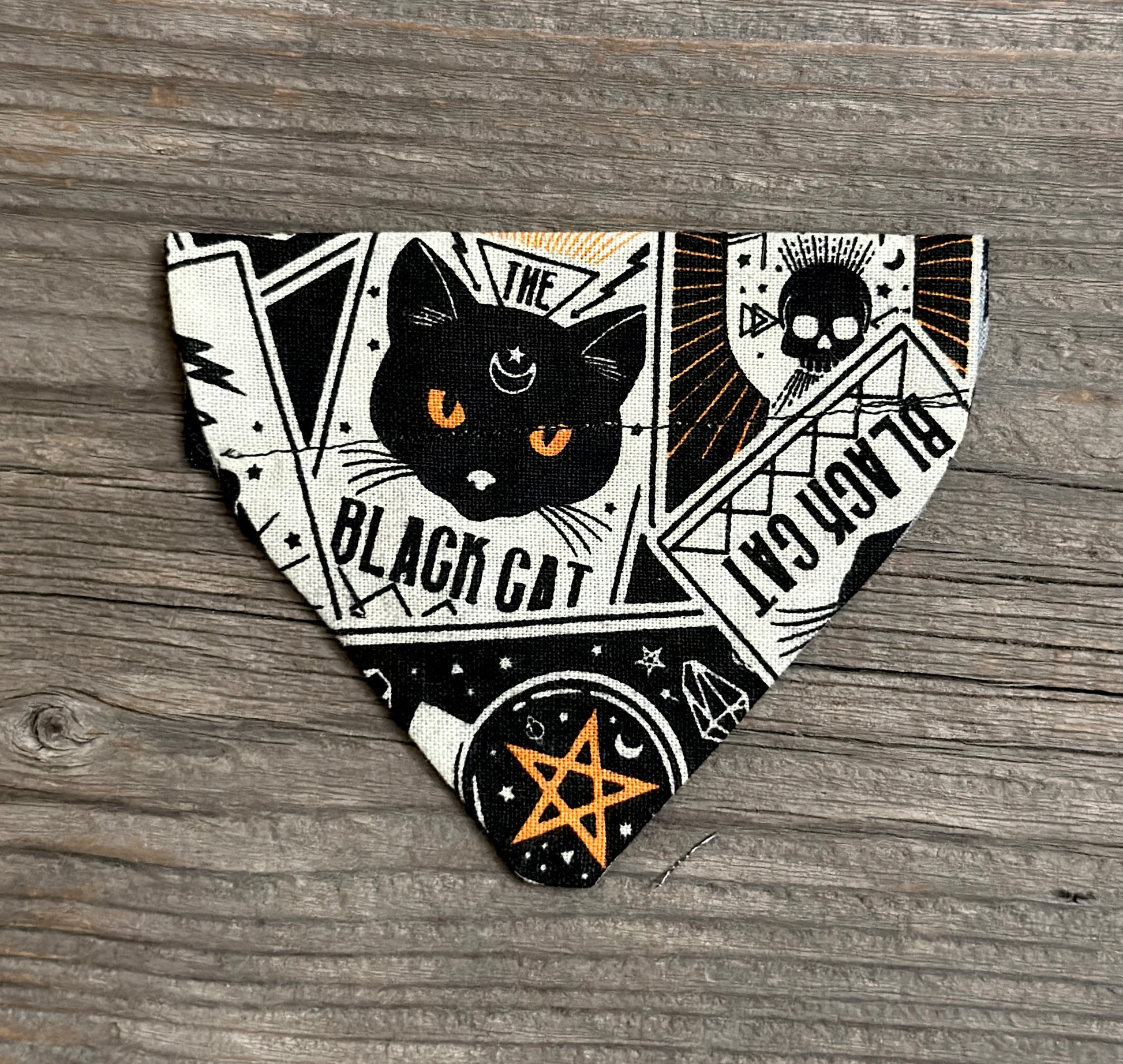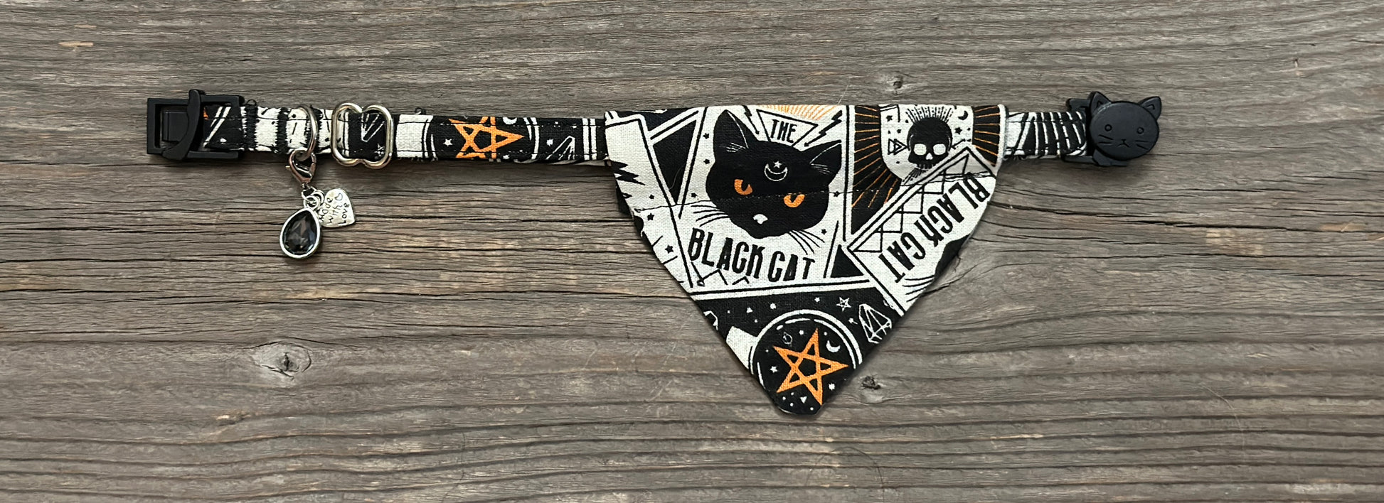 This adorable cat bandanna slides right onto your cat collar. For some extra cuteness, buy the matching cat collars. This bandanna is 'Wednesday' and 'Arr me Matey!' If you'd like a different pairing, just leave us a message in the order notes.