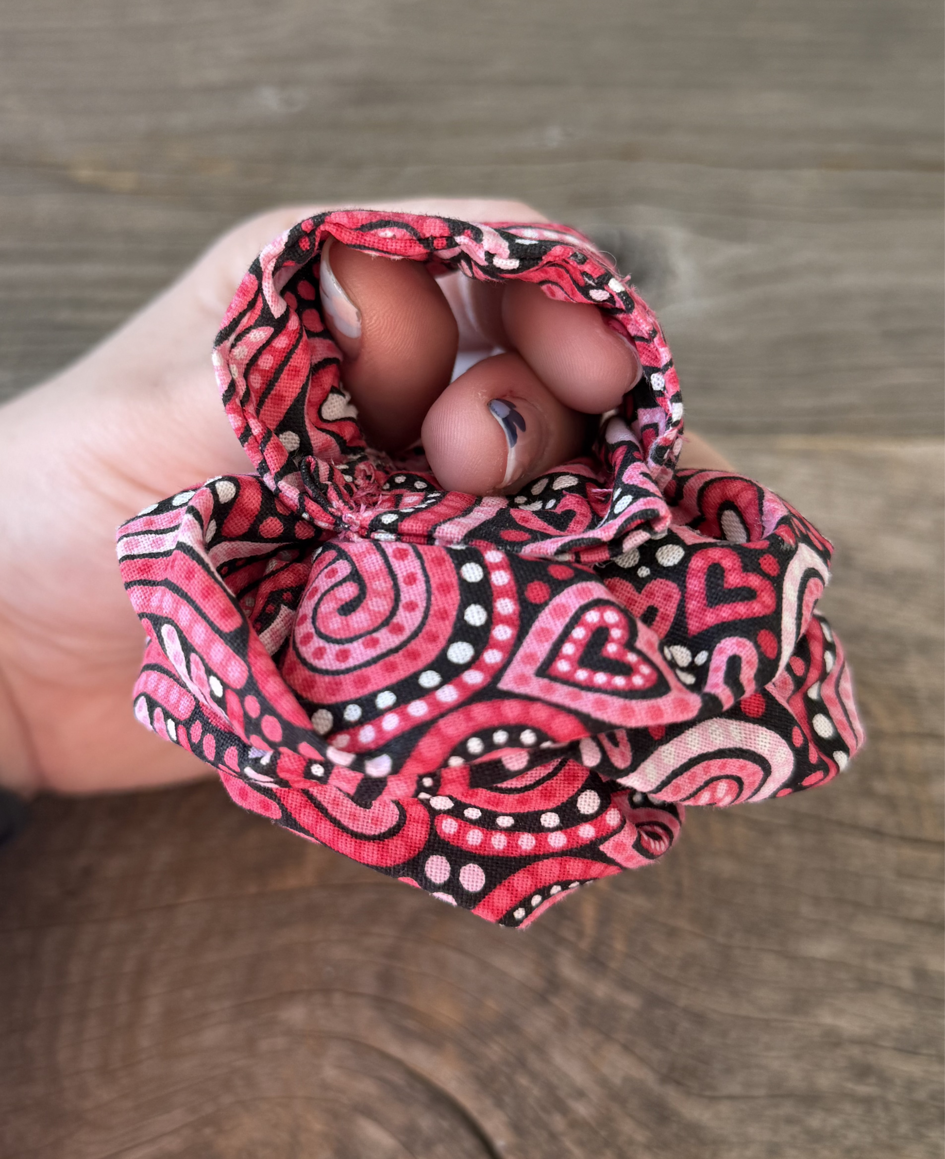 This pattern is a love letter from Andy to Bella, his muse. Dotted hearts dance across the black background in a mesmerizing array of light pink, red, salmon, and rose hues. Surrender to the captivating spell, as each swirl promises to sweep you off your feet and plunge you into the depths of love. This enamoring pattern is a stylish ode to love.