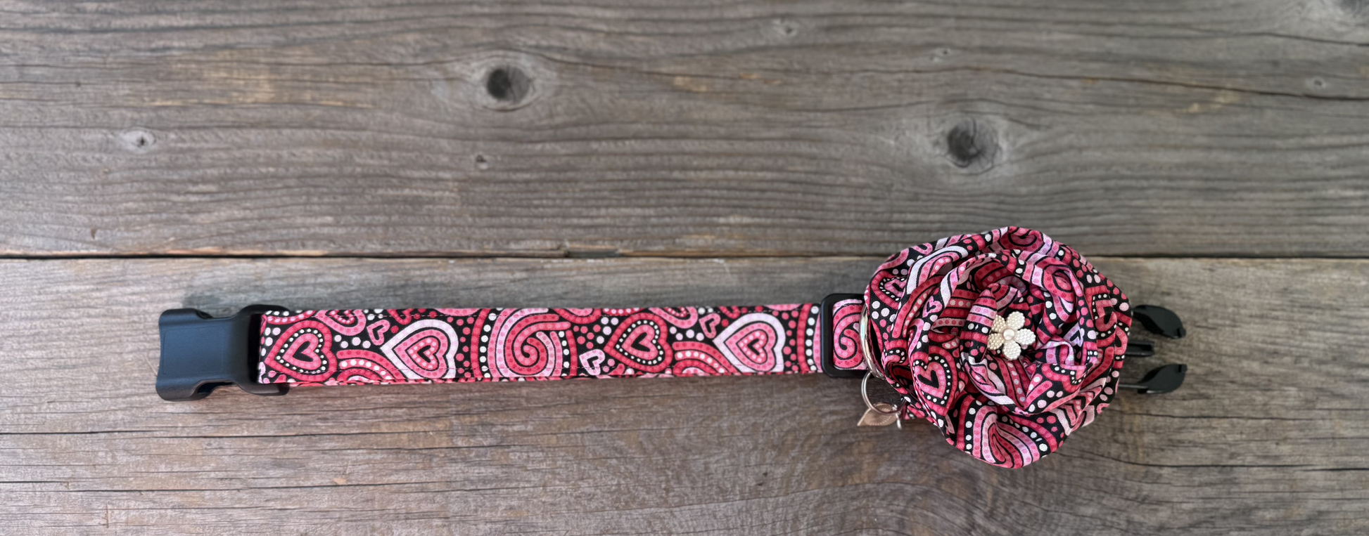 All the flowers will fit a 1 inch collar. We are happy to make custom sizes or chance the fabric, just send us an email at terrificollars@gmail.com.
