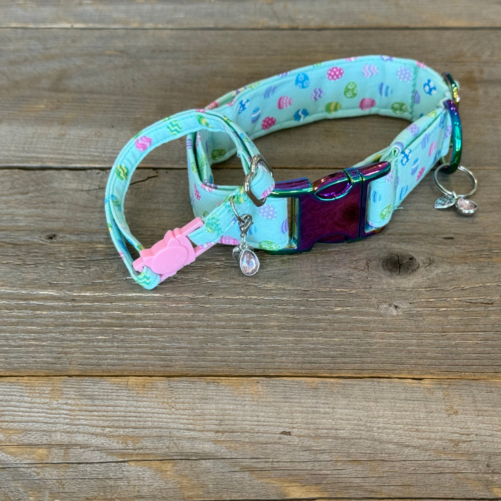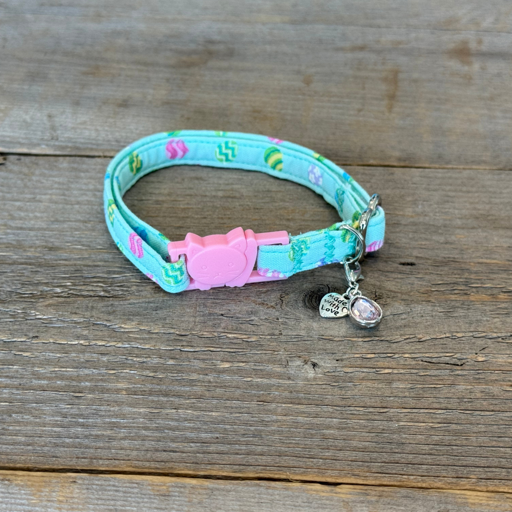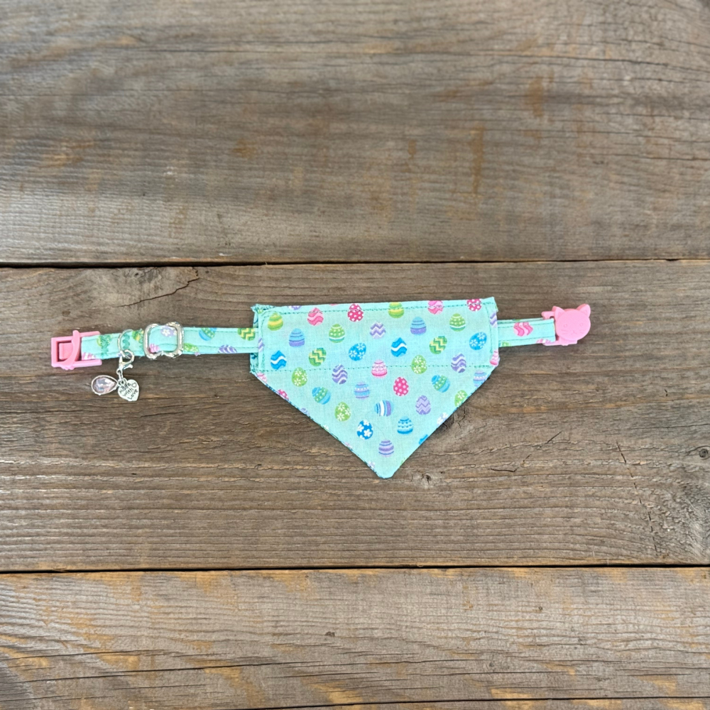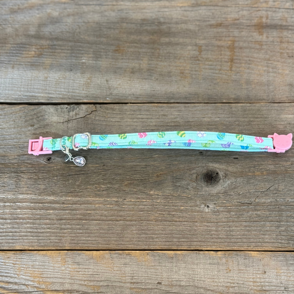 Hop into a world of festive fun with the Eggstravagant collar—where every wag and whisker twinkle with springtime cheer! Adorned with a delightful array of patterned eggs in playful pinks, blues, greens, and purples, this charming accessory is a pastel paradise for kitties who love to strut in style. The soft mint backdrop and decorative trim add an extra touch of whimsy, making it perfect for Easter egg hunts or just everyday frolicking. Whether your furry friend is the Easter Bunny’s best helper or simply a lover of all things adorable, the Eggstravagant collar is sure to make their look egg-stra special!