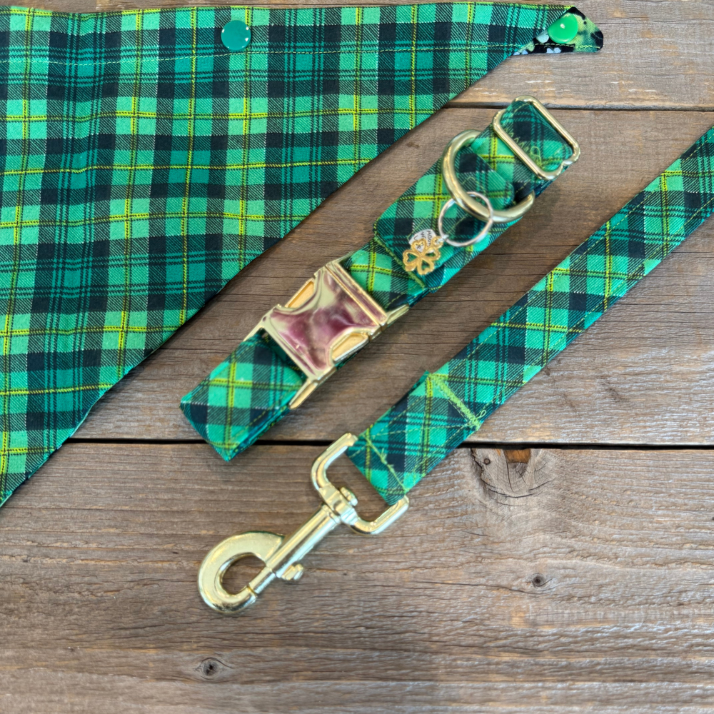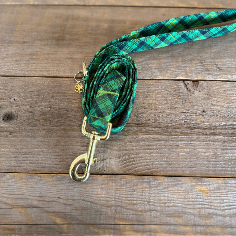 Wrap your pup in the timeless charm of the Emerald Isle Plaid leash, a dapper nod to rolling green hills, misty mornings, and cozy Celtic traditions! Woven with deep emerald, rich forest green, and golden threads of luck, this plaid masterpiece evokes the warmth of a countryside hearth and the spirit of grand adventures through ancient castles and whispering glens. Whether your furry friend is a noble guardian of the land or a playful rogue with a heart of gold, the Emerald Isle Plaid leash ensures they step out in style—fit for an Irish legend in the making!