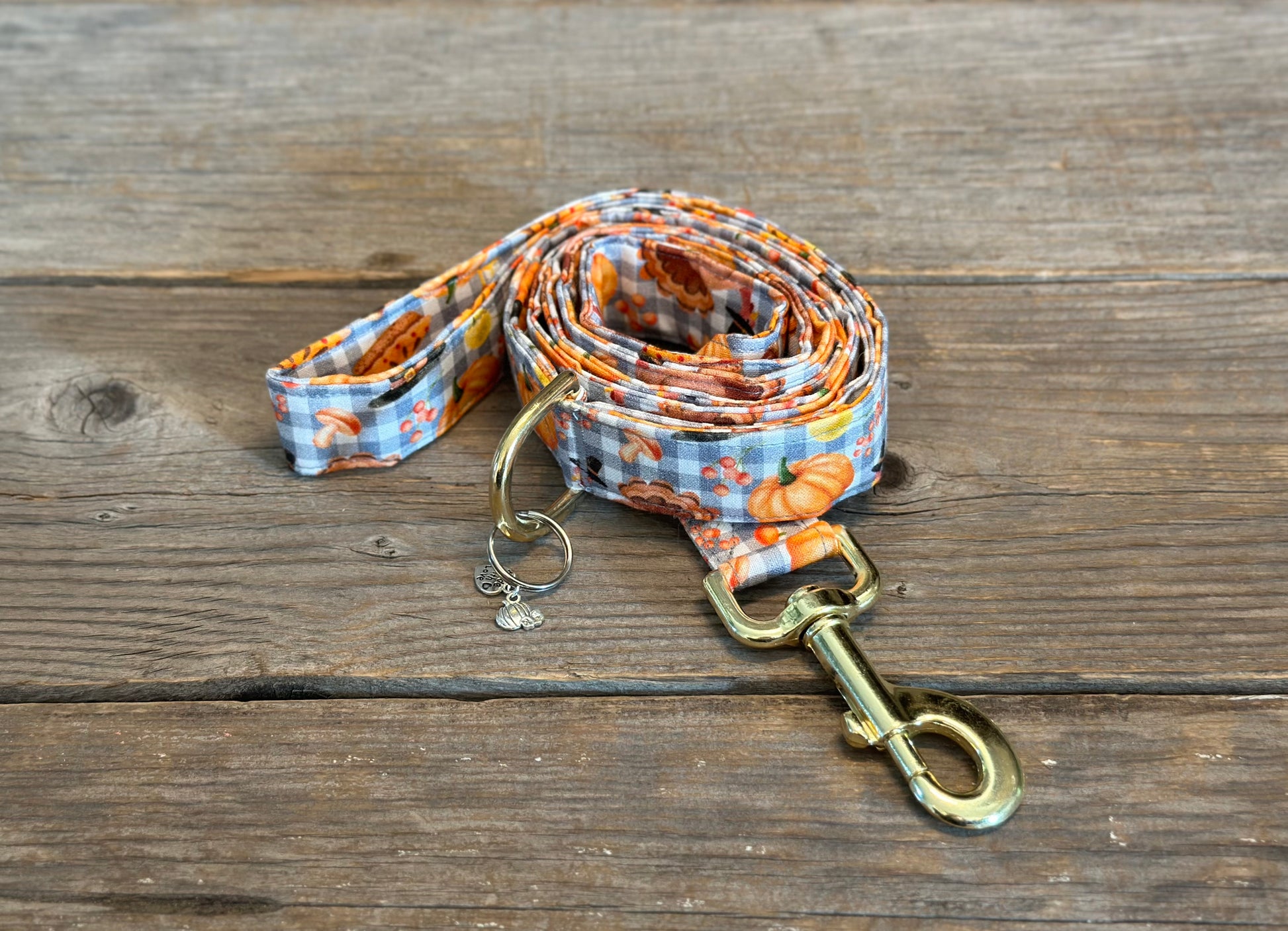 This charming design is set on a cozy grey gingham backdrop sprinkled with all the Thanksgiving necessities: pumpkins, pies, cranberries, mushrooms, acorns, pilgrim hats, and apples. Amongst all the food are turkeys scattered about dressed in their dapper hats! Perfect for those who love to celebrate the season in style, this pattern is a cozy nod to all the flavors and festivities of fall. So, get ready to pop your pants top button, relax, and enjoy the Thanksgiving feast.