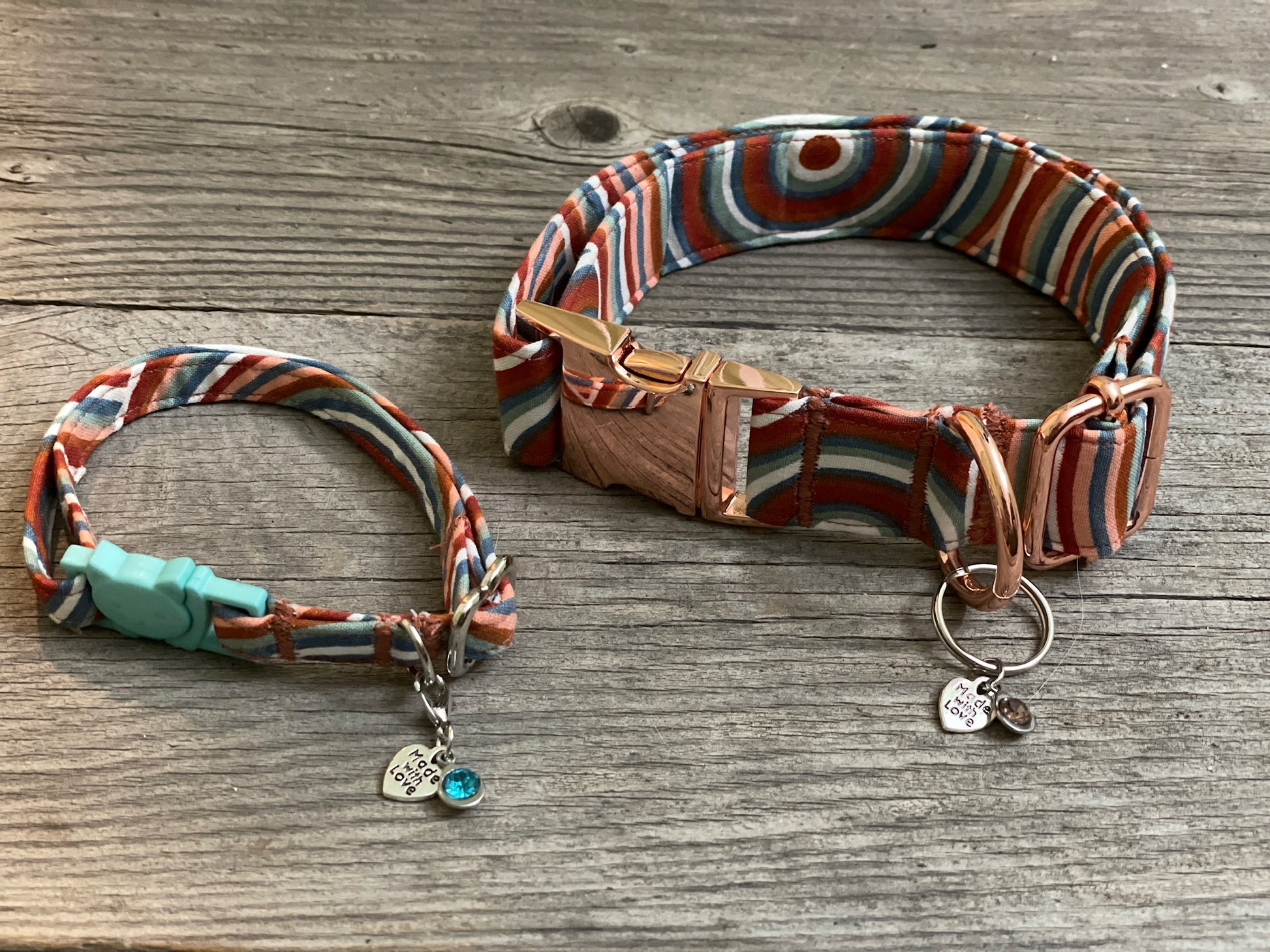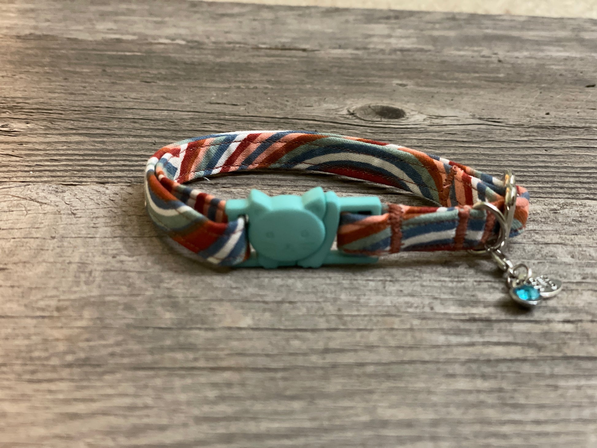 Each collar comes with a coordinating charm*. This hand-crafted collar is made with 100% cotton fabric and a breakaway clasp. This elegant collar is sure to last for years.