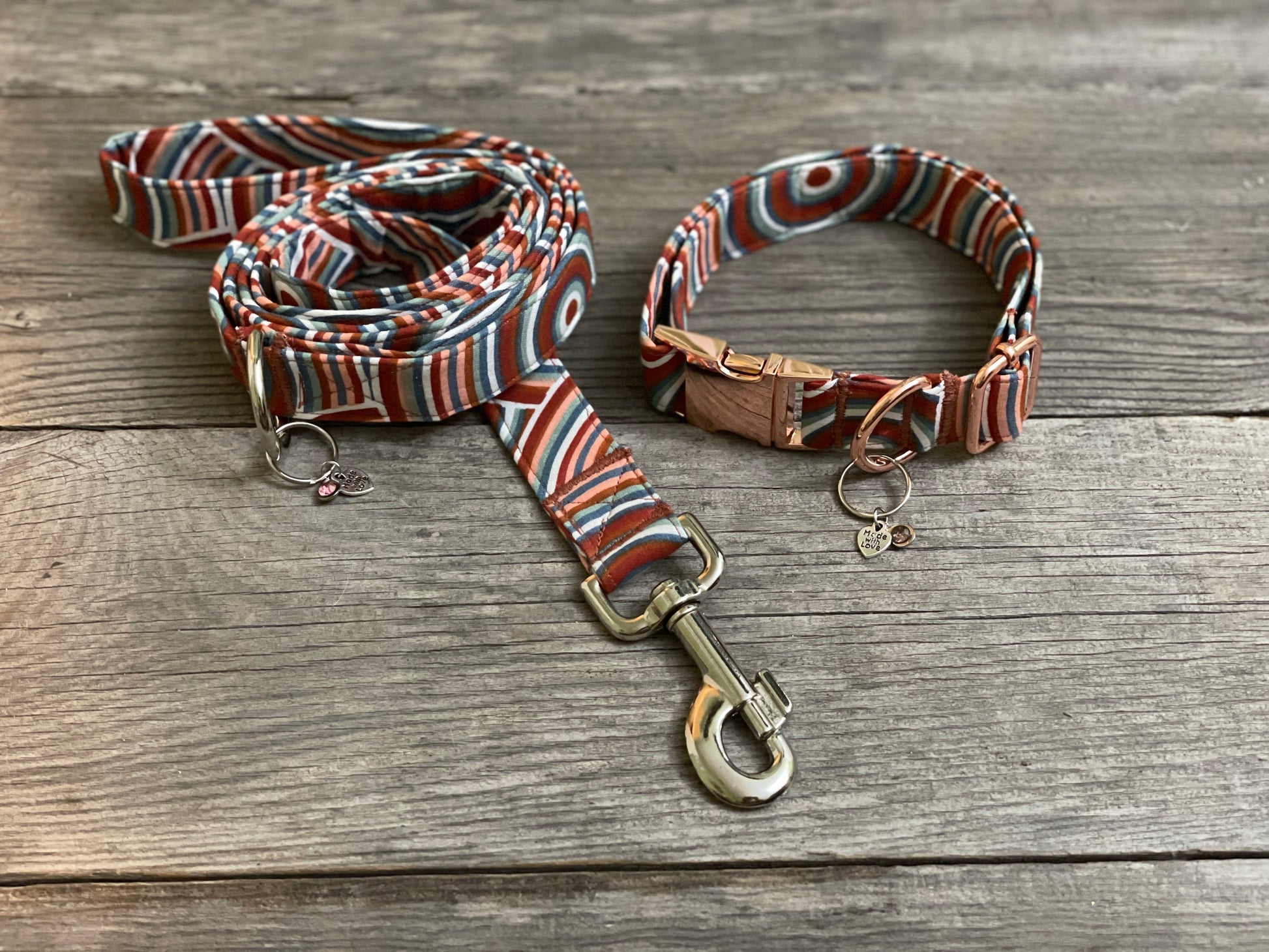 We offer a matching collar to this leash, so don't forget to check it out! All our collars are 1-inch wide and adjustable. We offer small, medium, and large, but are happy to make custom sizes, just send us an email at terrificollars@gmail.com.