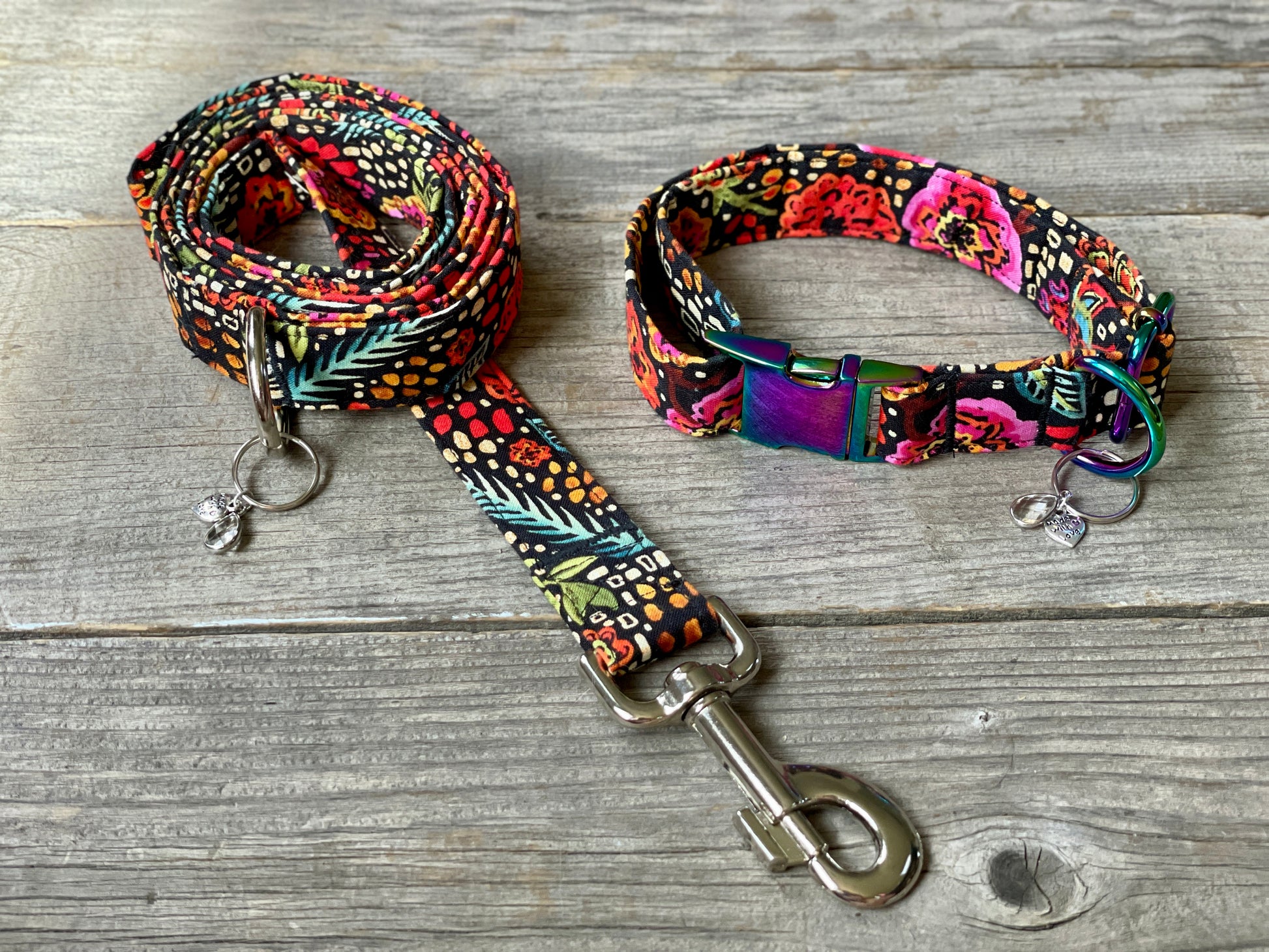 We offer a matching collar to this leash, so don't forget to check it out! All our collars are 1-inch wide and adjustable. We offer small, medium, and large, but are happy to make custom sizes, just send us an email at terrificollars@gmail.com.