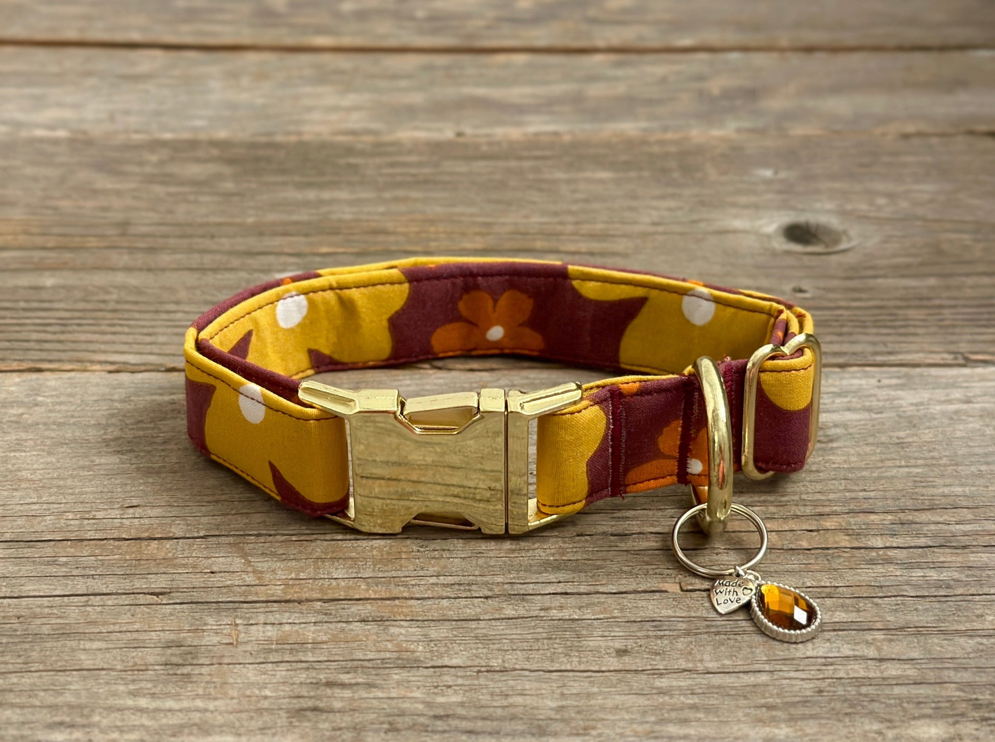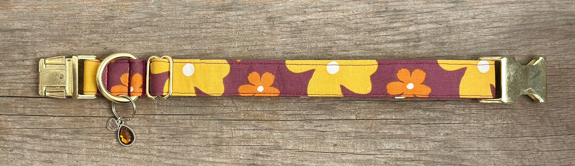 This collar has a matching leash option, don't forget to check it out! Our leashes are 5-foot long, 1-inch wide, and come with a heavy-duty silvertone metal spring-loaded hook that attaches to the D-ring on your pet's collar**. Each collar comes with a coordinating charm*. This hand-crafted collar is made with 100% cotton fabric and your choice of a metal or plastic buckle with a matching adjuster. Each collar is made with a reinforced metal D-ring. This elegant collar is sure to last for years.