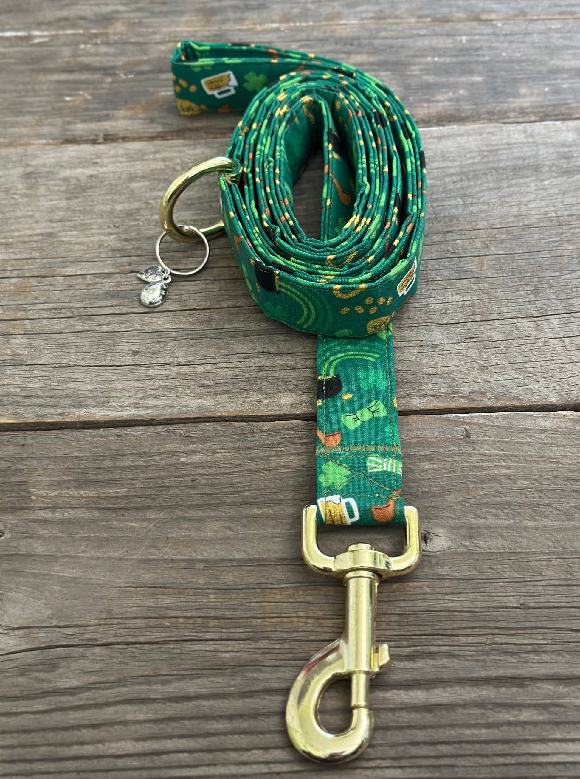 Our dog leashes are 1" wide and 5' long. Upon special request, we can make leashes longer or shorter. We can also make them 5/8" wide.