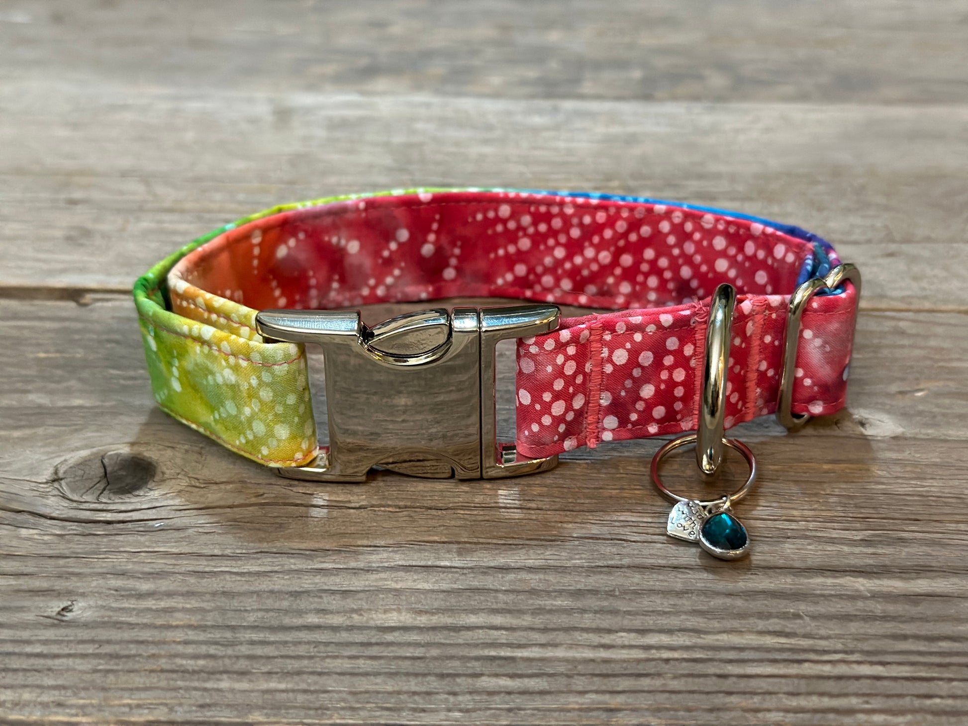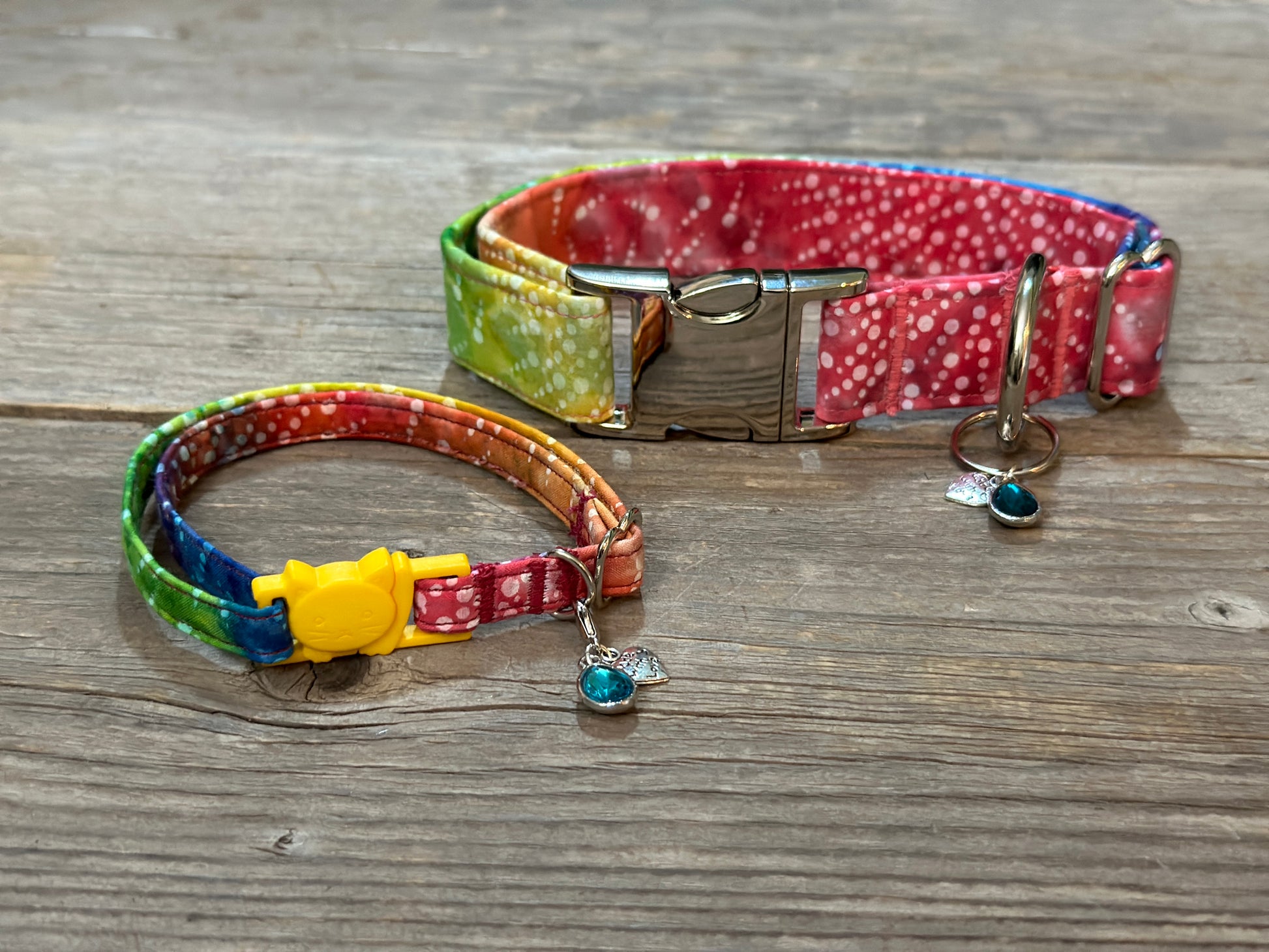 This collar has a matching leash option, don't forget to check it out! Our leashes are 5-foot long, 1-inch wide, and come with a heavy-duty silvertone metal spring-loaded hook that attaches to the D-ring on your pet's collar**. Each collar comes with a coordinating charm*. This hand-crafted collar is made with 100% cotton fabric and your choice of a metal or plastic buckle with a matching adjuster. Each collar is made with a reinforced metal D-ring. This elegant collar is sure to last for years.