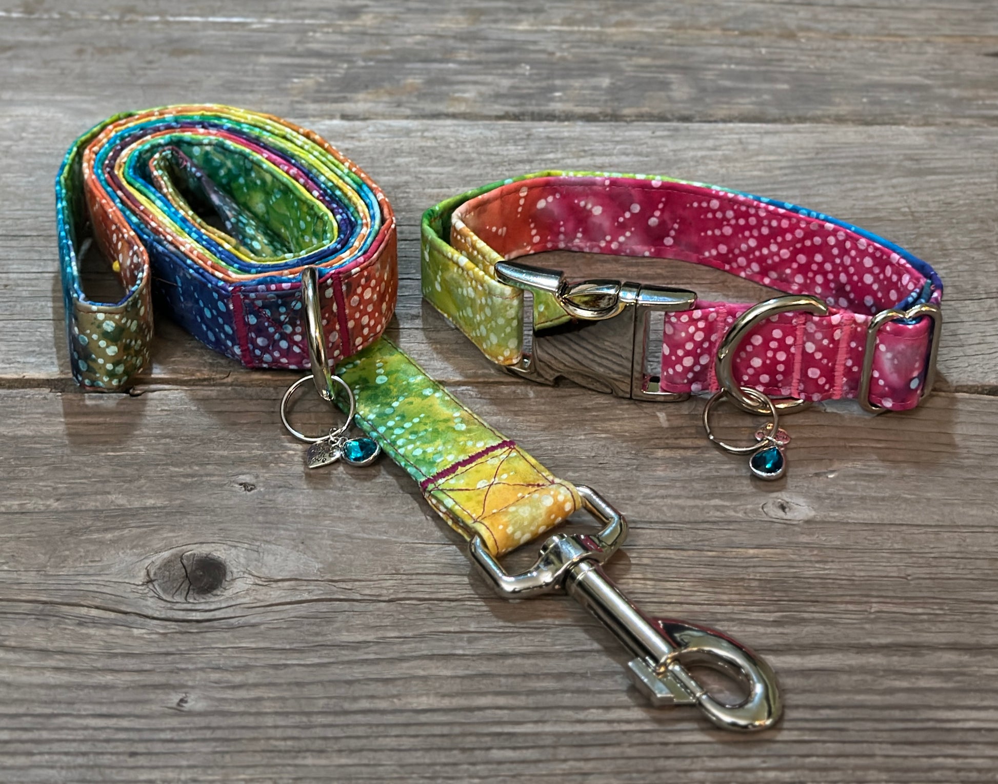 We offer a matching collar to this leash, so don't forget to check it out! All our collars are 1-inch wide and adjustable. We offer small, medium, and large, but are happy to make custom sizes, just send us an email at terrificollars@gmail.com.