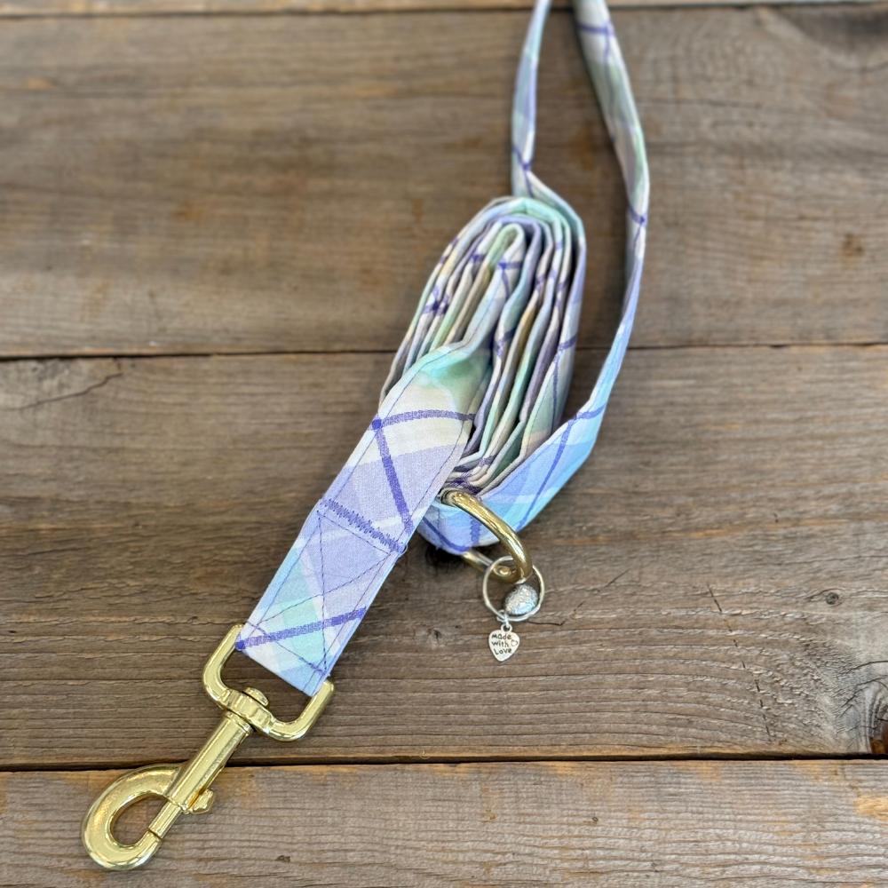 Drift into a dreamy meadow with the Lavender Haze Plaid leash, a delicate blend of soft purples, golden sunlight, and misty greens woven into a classic yet enchanting plaid. Like a gentle morning fog rolling over wildflowers, this design carries quiet magic—perfect for pups who prance through life with a touch of wonder. Whether they’re chasing butterflies or curling up for cozy daydreams, this collar adds a sprinkle of charm to every adventure. A must-have for pups who bring a little light and love wherever they go!