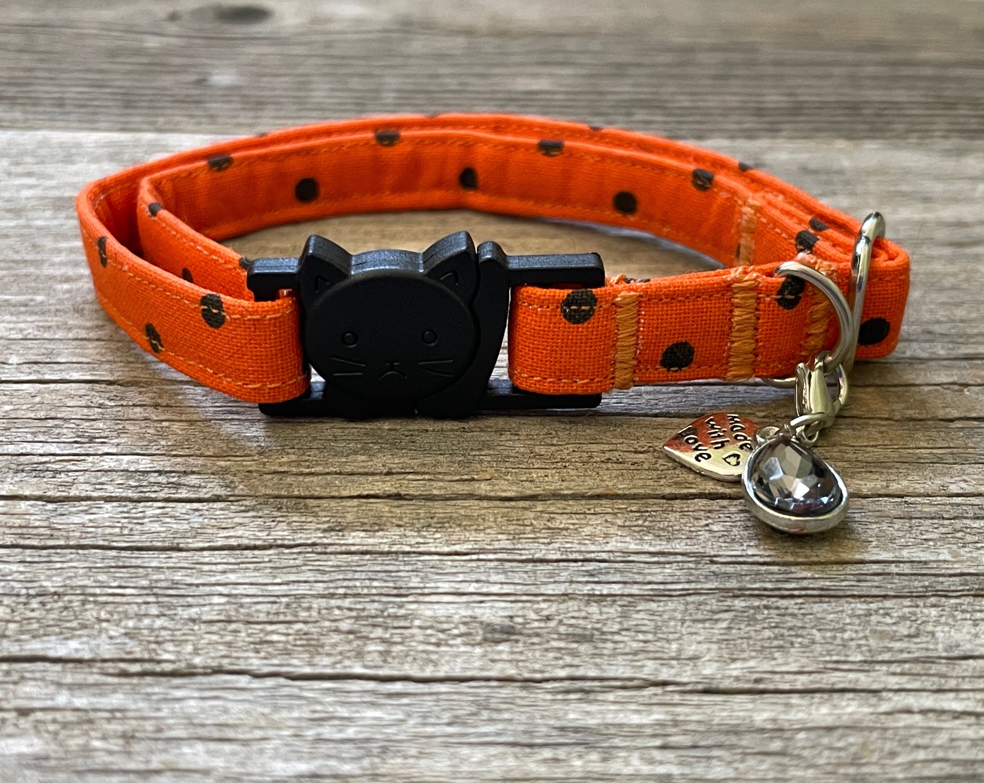This collar is made out of 100% cotton fabric, making it easy to hand-wash! To wash, simply place it in warm, soapy water and gently rub the fabric. Rinse the collar, then dry it by laying it flat or by hanging it on a wire. If your cat has a little extra fun while wearing this collar, try using a stain-remover pen or spray.