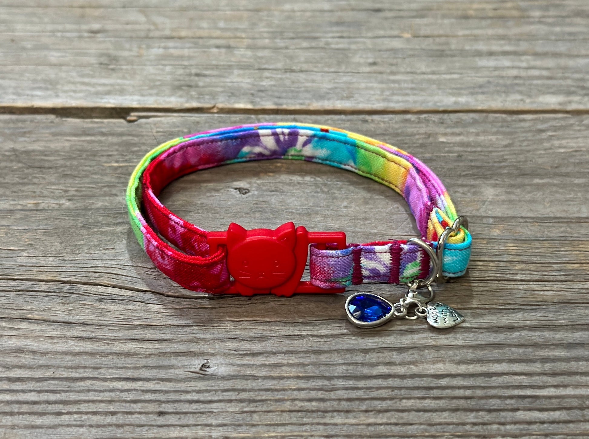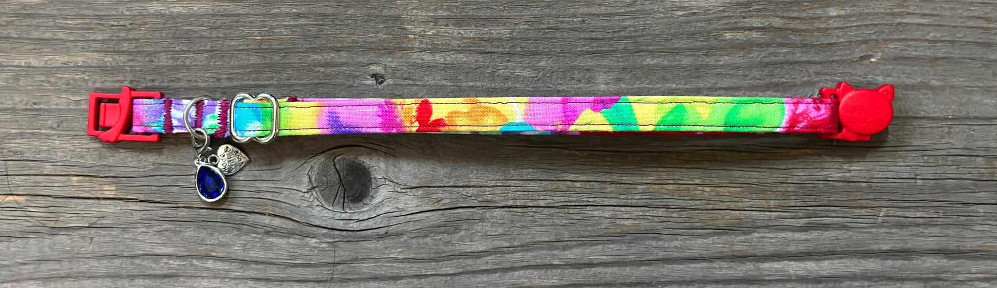 This collar is made out of 100% cotton fabric, making it easy to hand-wash! To wash, simply place it in warm, soapy water and gently rub the fabric. Rinse the collar, then dry it by laying it flat or by hanging it on a wire. If your cat has a little extra fun while wearing this collar, try using a stain-remover pen or spray.