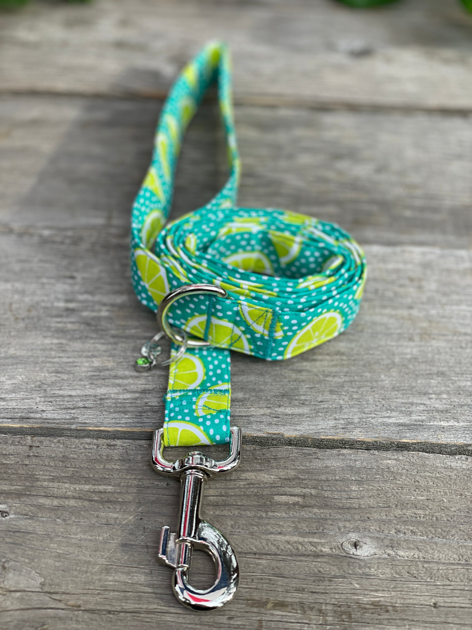 This deep turquoise leash is a real beauty! Margaritaville is a cocktail of huge lime slices paired with splashes of white dots, making it perfect for a party or sitting on your front porch swing.