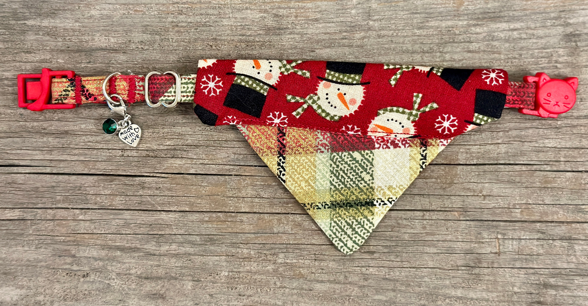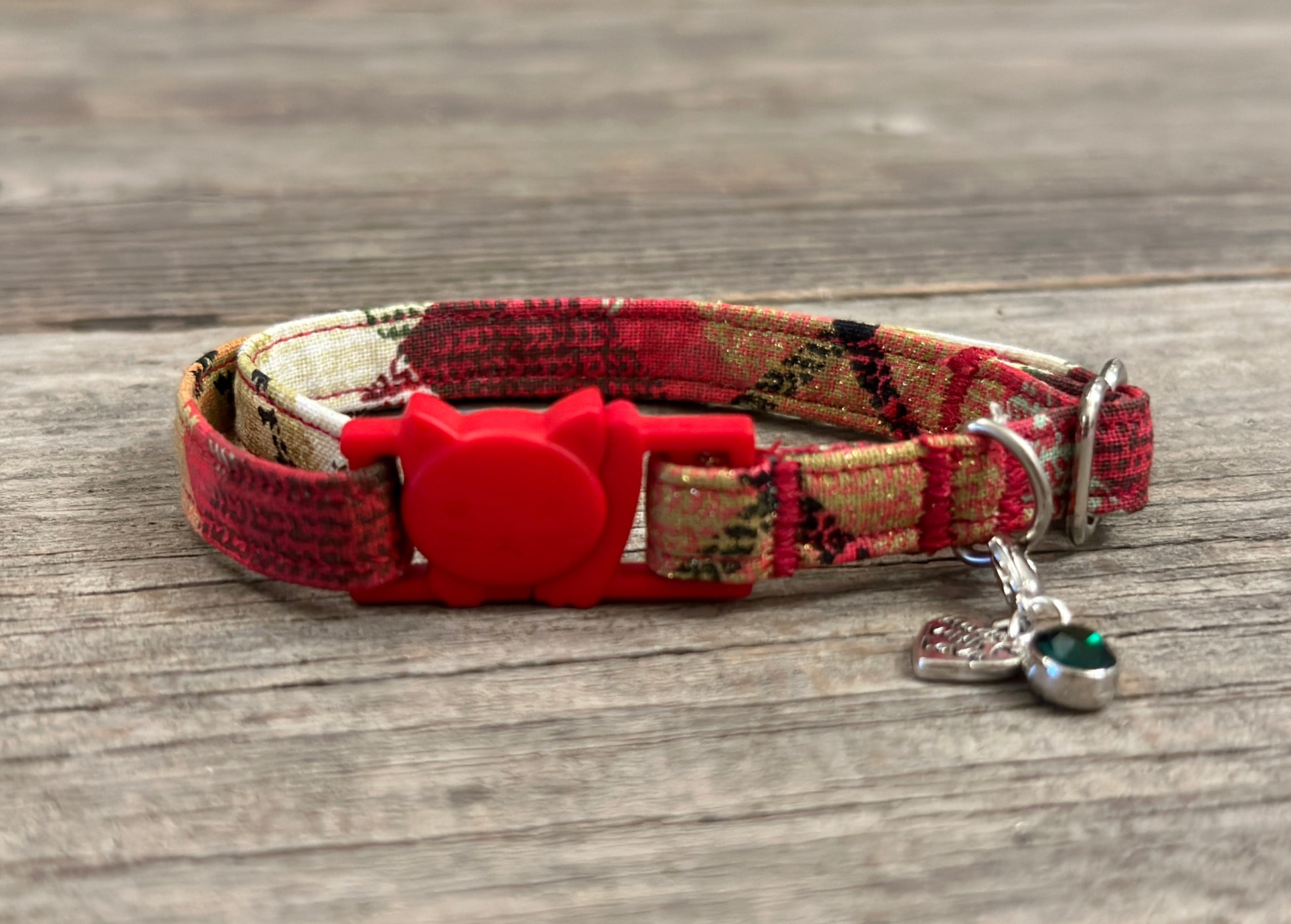This collar is made out of 100% cotton fabric, making it easy to hand-wash! To wash, simply place it in warm, soapy water and gently rub the fabric. Rinse the collar, then dry it by laying it flat or by hanging it on a wire. If your cat has a little extra fun while wearing this collar, try using a stain-remover pen or spray.