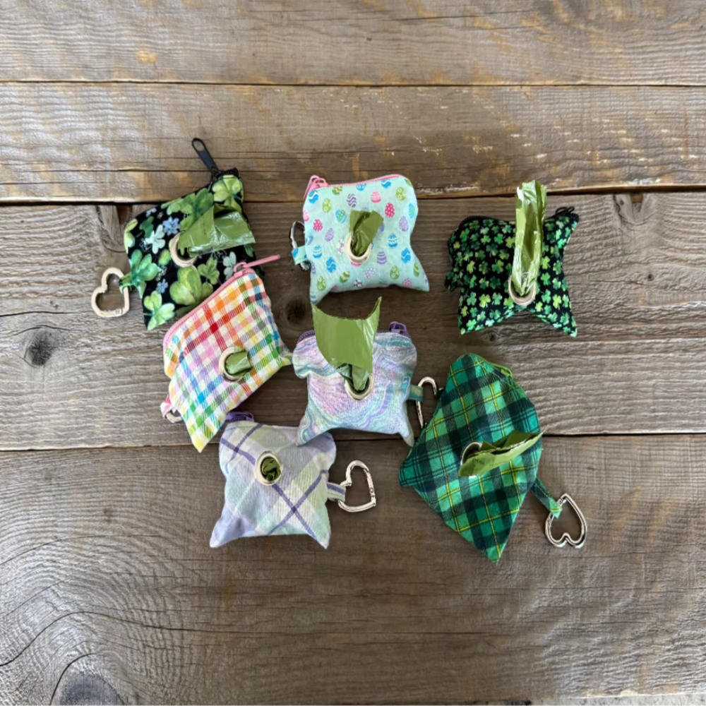 Crafted from durable fabric that matches your collar and leash, the pouch securely holds 1 roll of waste bags, making cleanup effortless. The reinforced metal grommet allows for easy dispensing, ensuring you can grab a bag quickly when needed. Its compact, lightweight design makes it easy to clip onto a leash, belt loop, or bag using the attached heart-shaped carabiner. Bags come with 1 roll of bags.